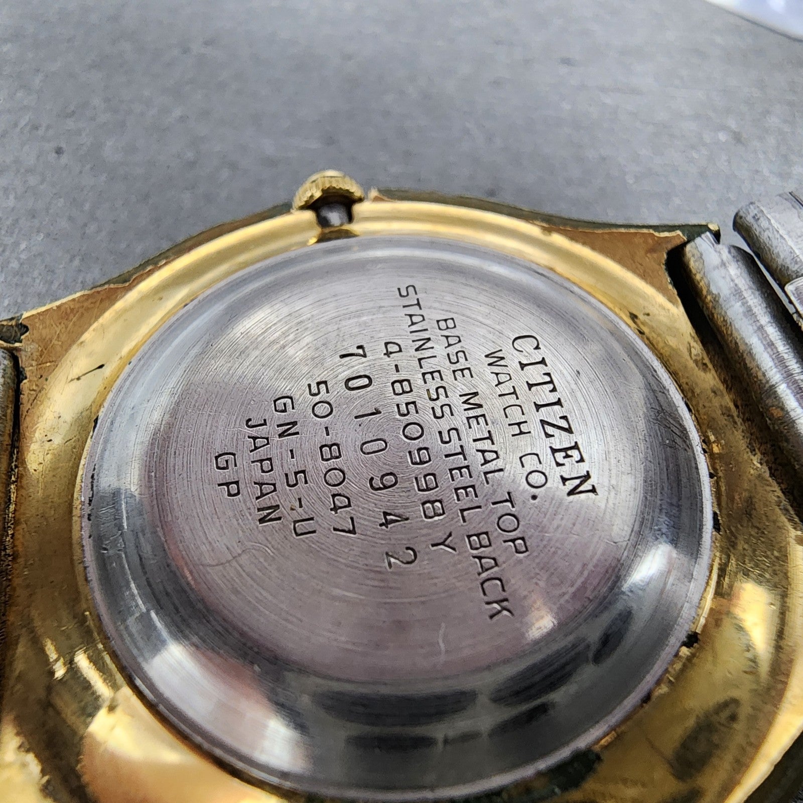 Citizen CQ Watch Men 36mm Champagne Dial Gold Tone Daydate 4-850998 PARTS