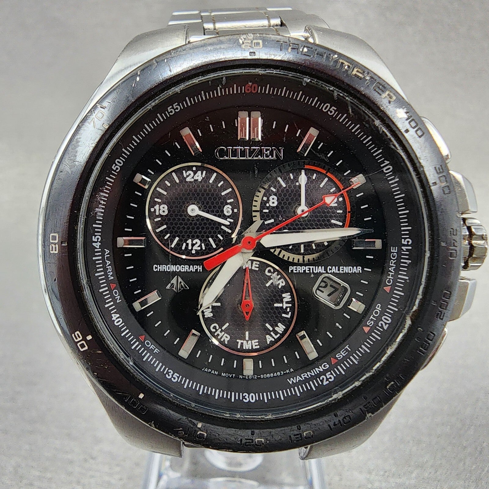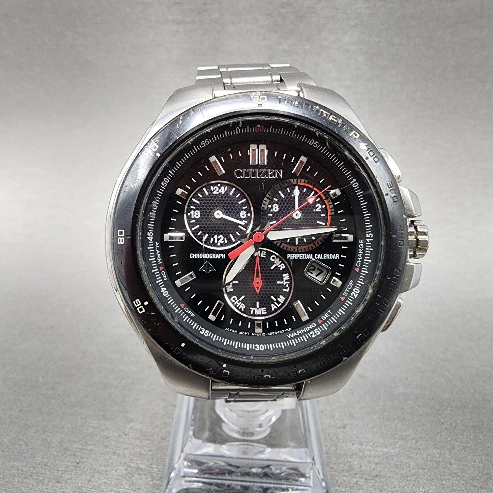 Citizen Eco-Drive Chronograph Watch Men 47mm Black Dial Steel Date Round Runs