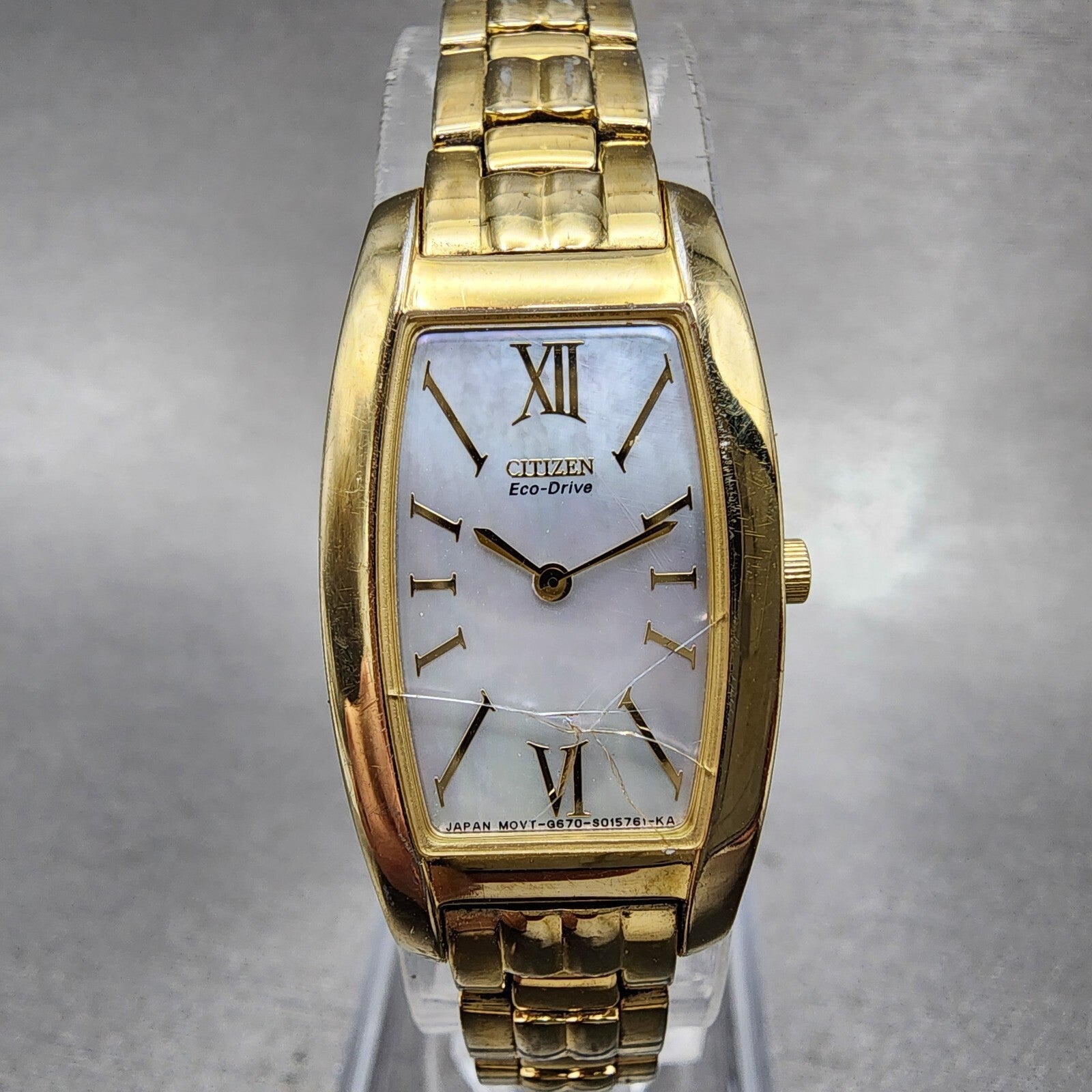 Citizen Eco-Drive Stiletto Watch Women 18mm MOP Dial Gold Tone G670-S008433 Runs