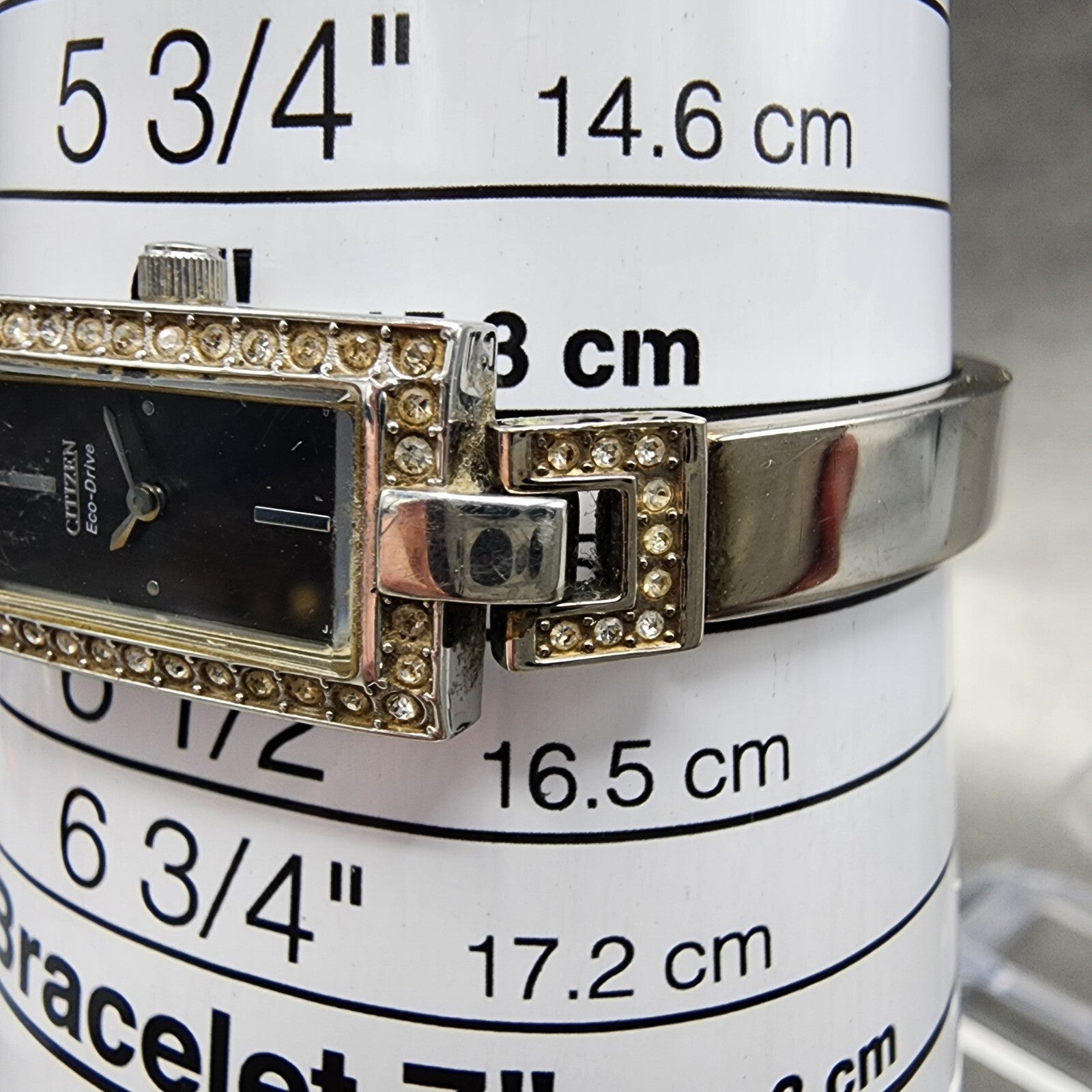 Citizen Eco-Drive Tank Watch Women 14mm Black Dial Steel Rectangle Crystals Runs