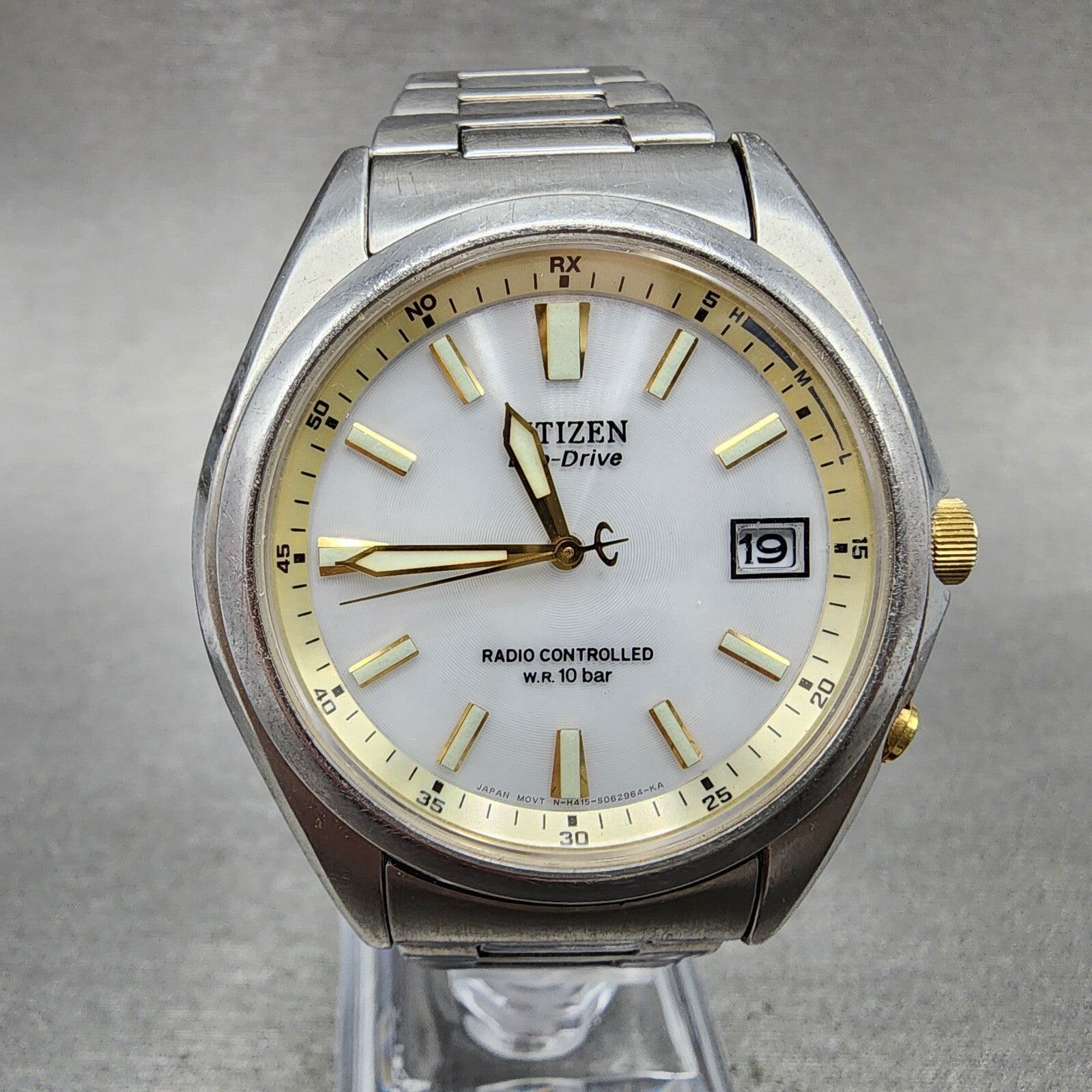Citizen Eco-Drive Watch Men 38mm Silver Dial Steel Date Atomic Runs H415-503303