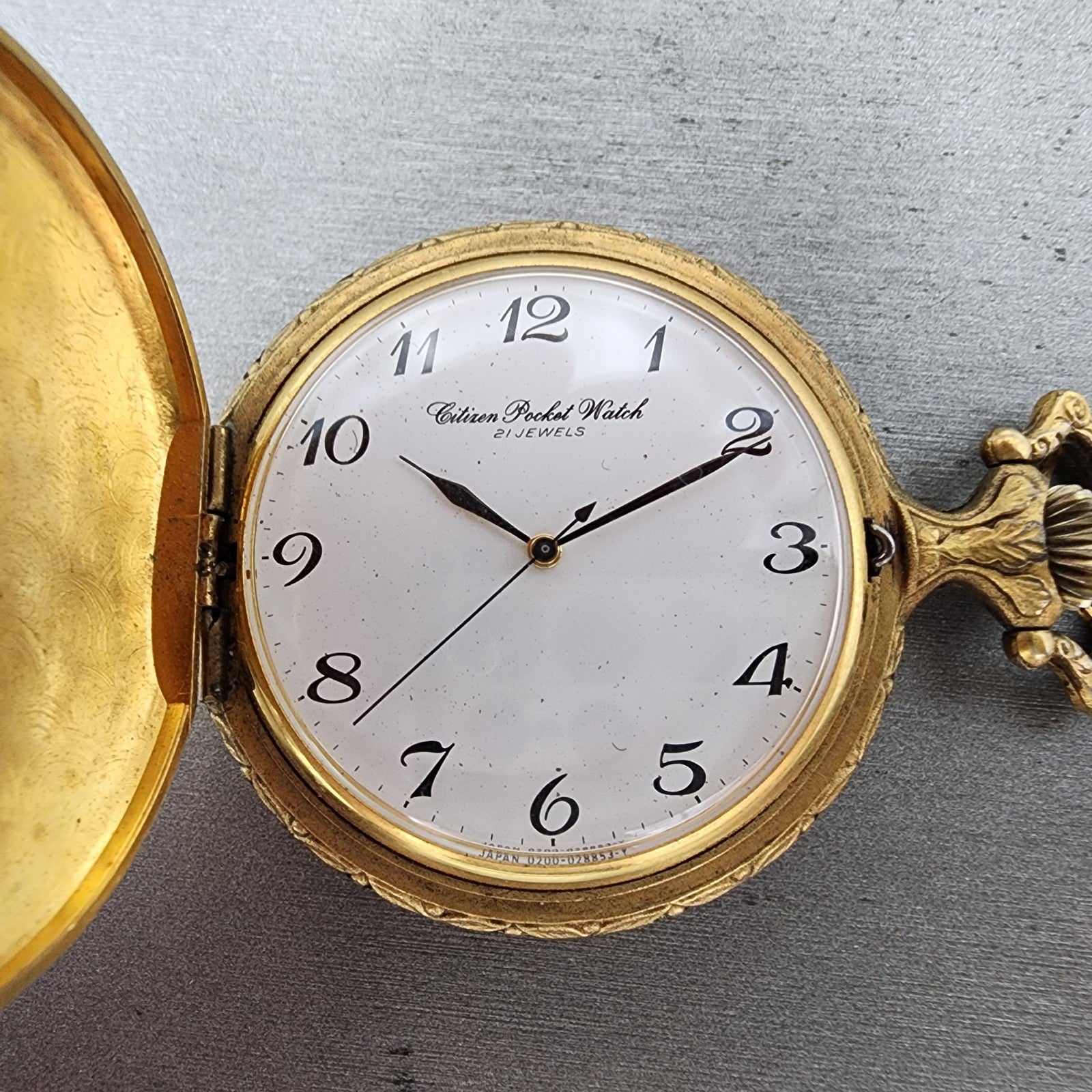Citizen Pocket Watch Men 48mm White Dial Gold Tone Manual 0200-028853 Runs PARTS