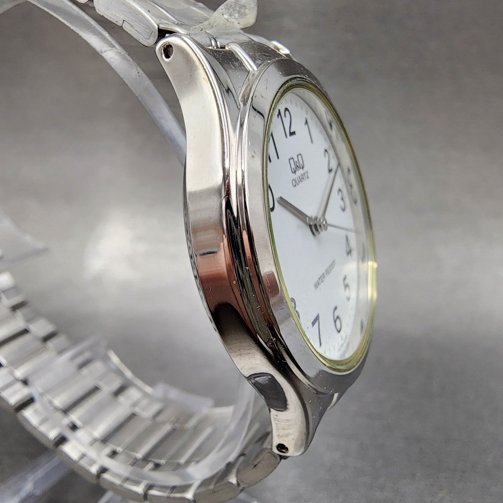 Citizen Q&Q Watch Men 34mm White Dial Silver Tone Vu76-204 New Battery