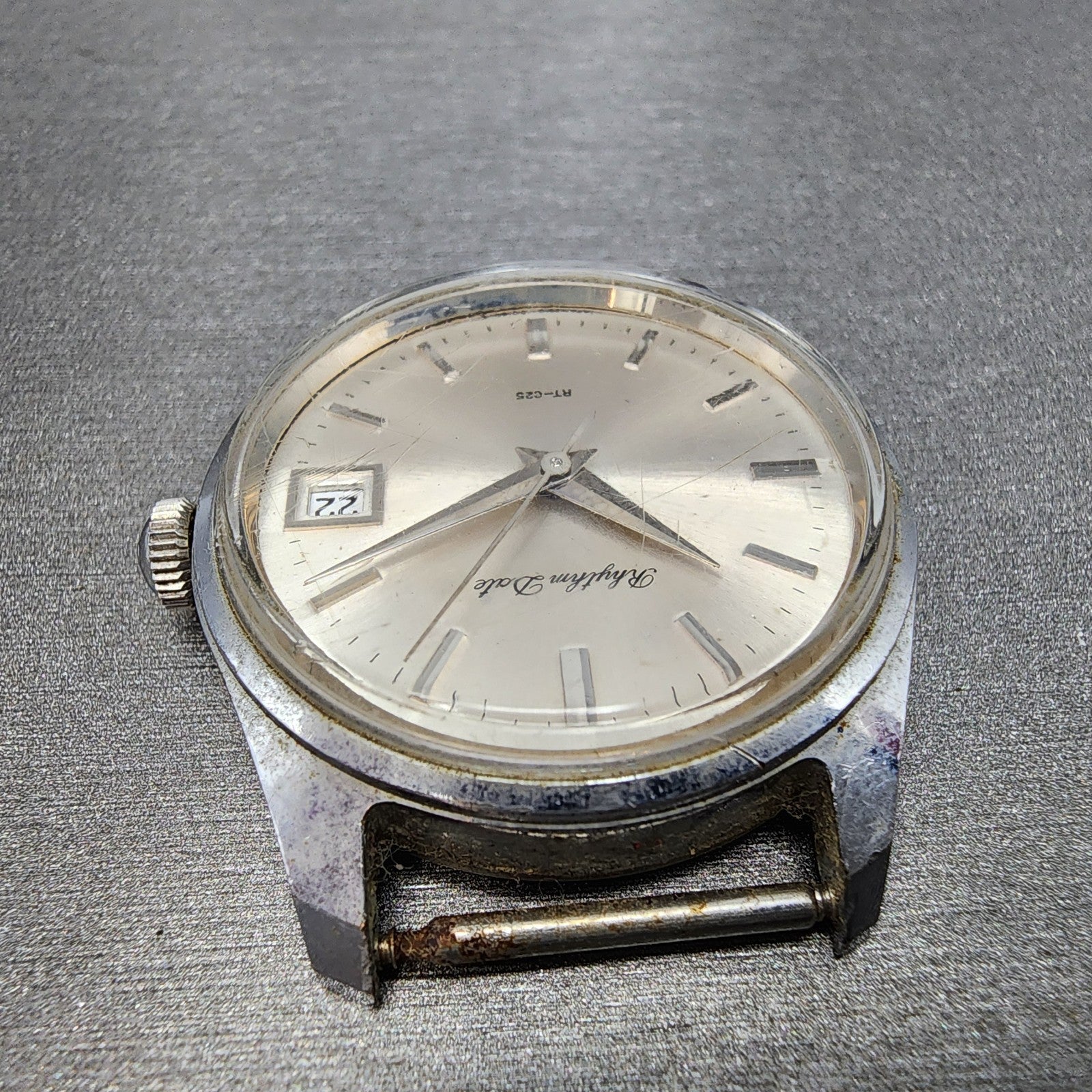DATE FLIPS AT 6. This watch has been worn but is in good working condition.