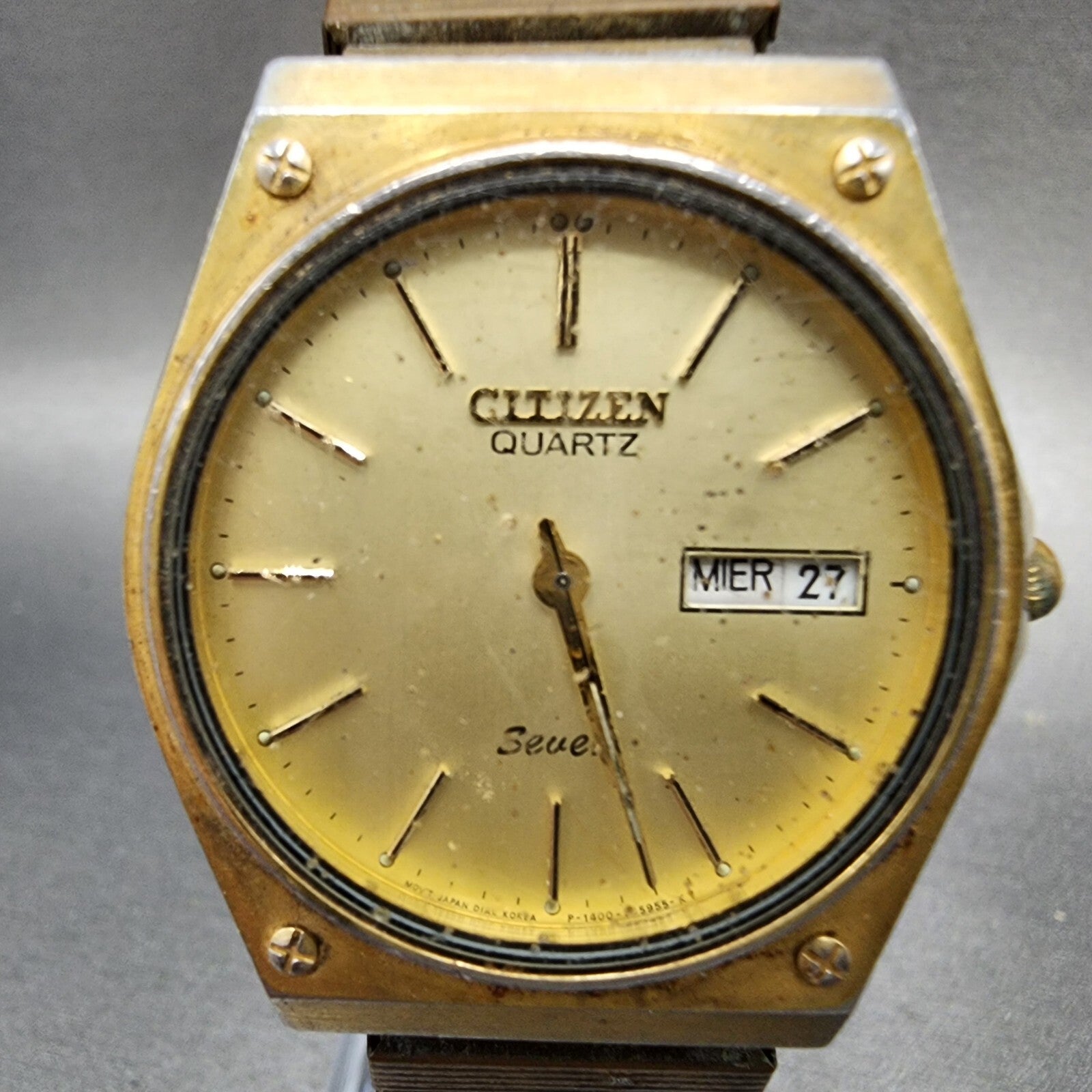 Citizen Seven Watch Men 35mm Champange Dial Gold Tone Daydate 1400-282949 PARTS