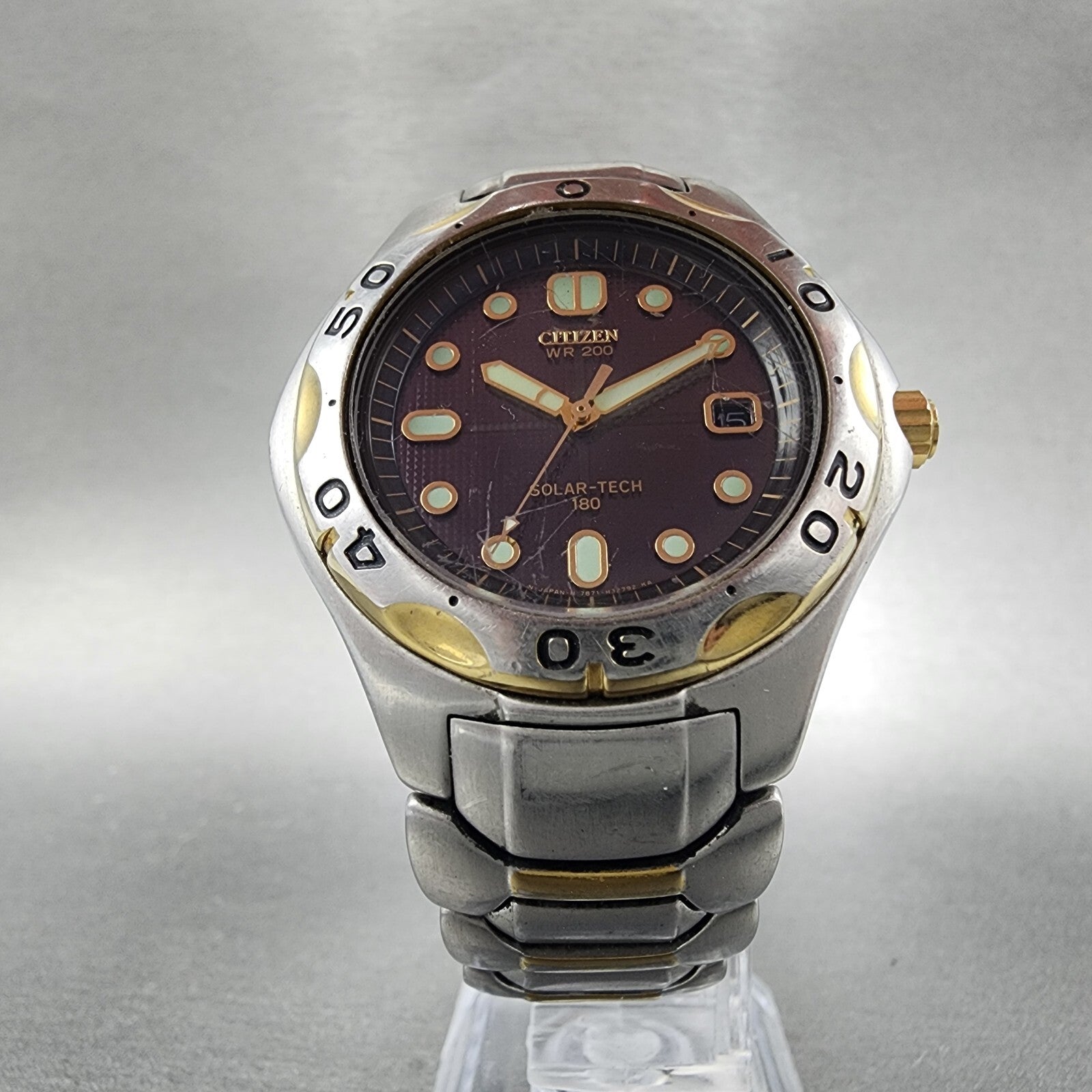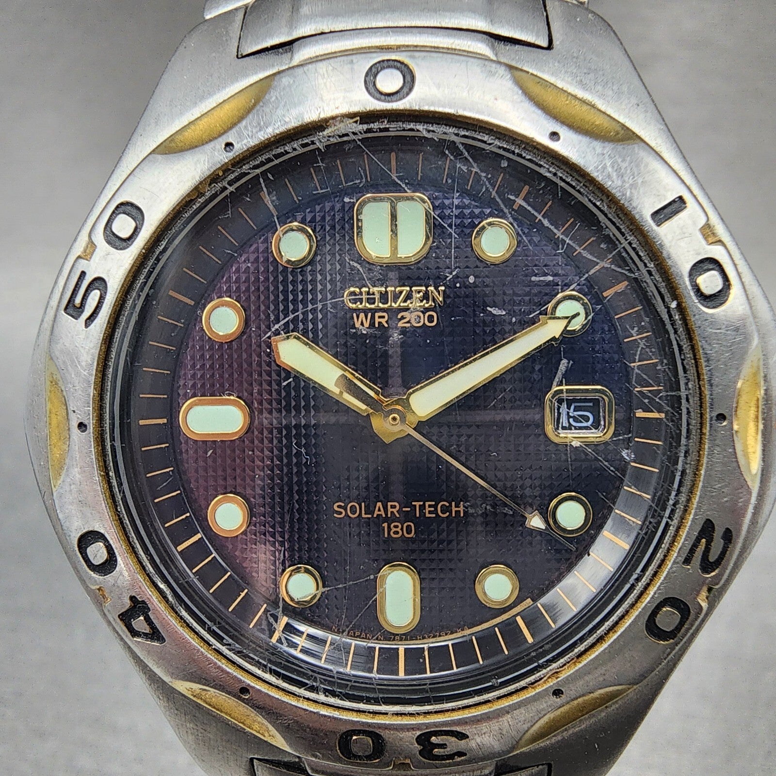Citizen Solar Tech 180 Watch Men 38mm Blue Dial Two Tone Date Round Works