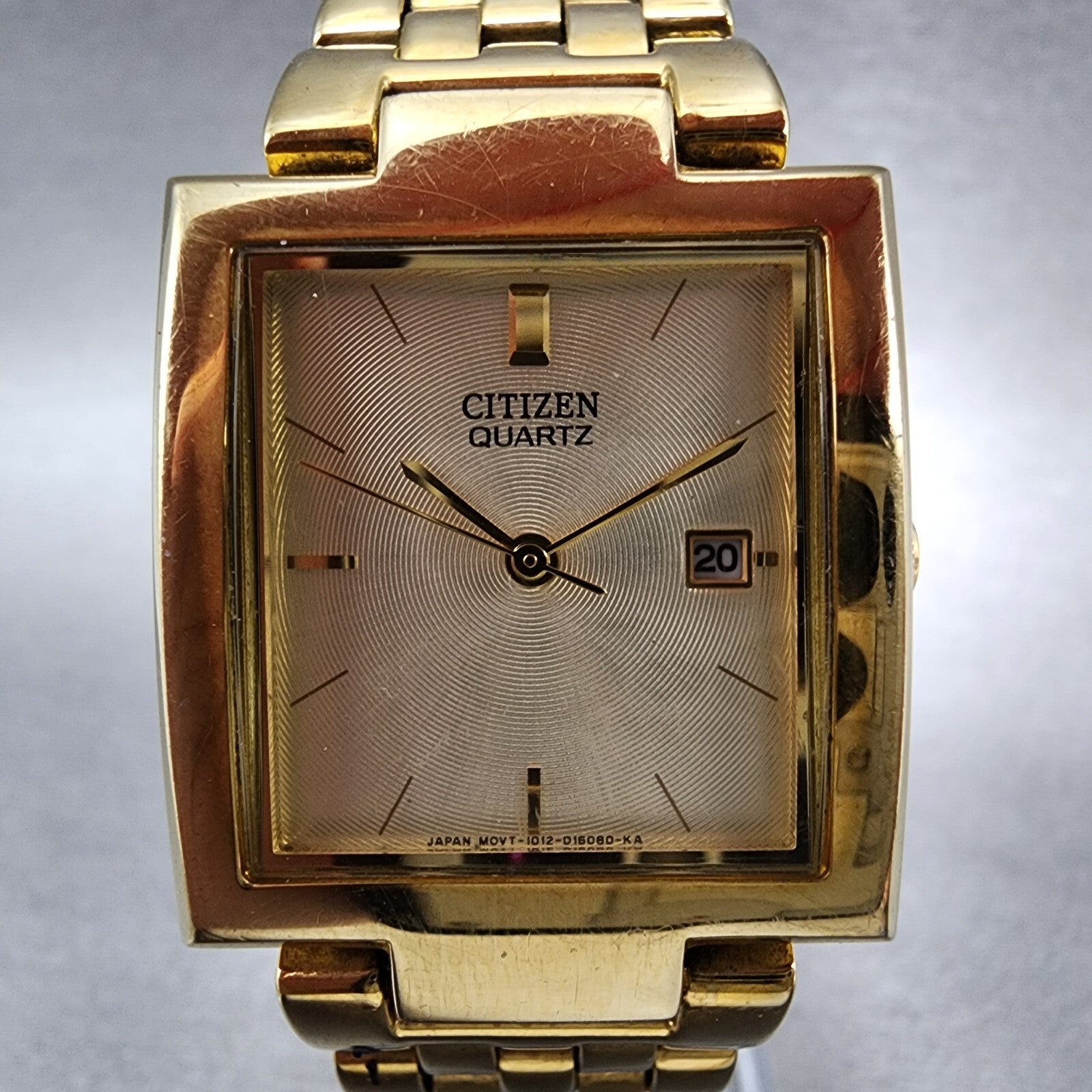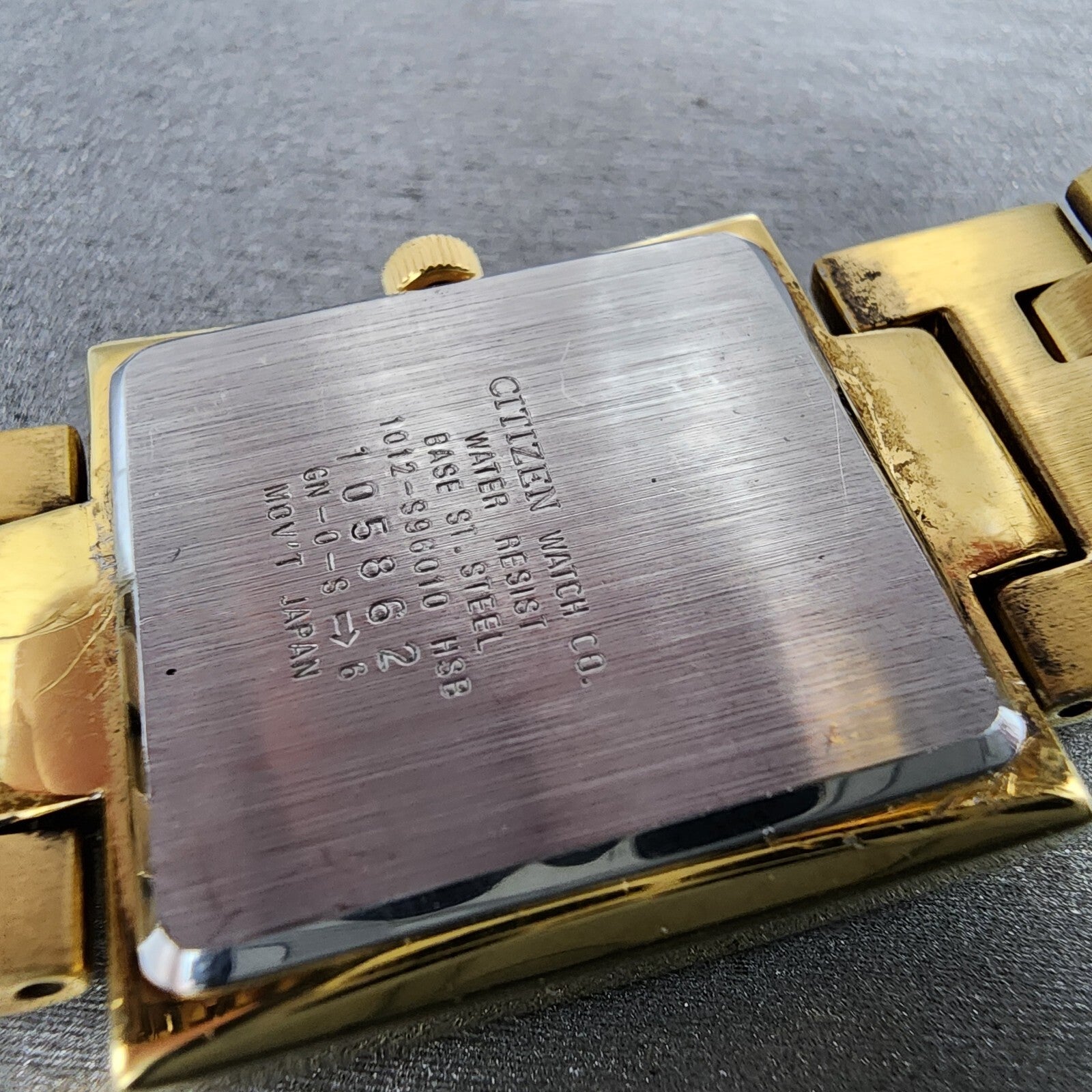 Citizen Tank Watch Men 27mm Champagne Dial Gold Tone Rectangle New Battery