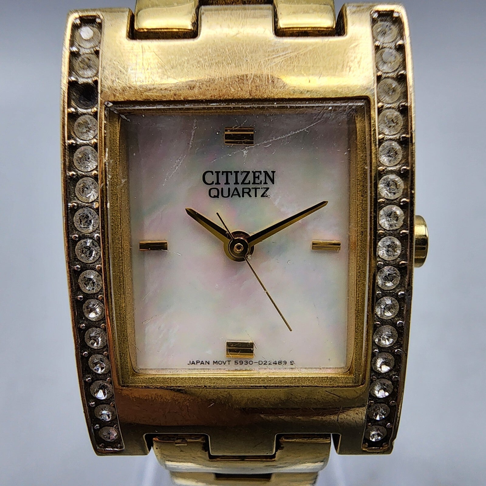 Citizen Tank Watch Women 20mm MOP Dial Gold Tone Rectangle 5930-S072051 New Batt