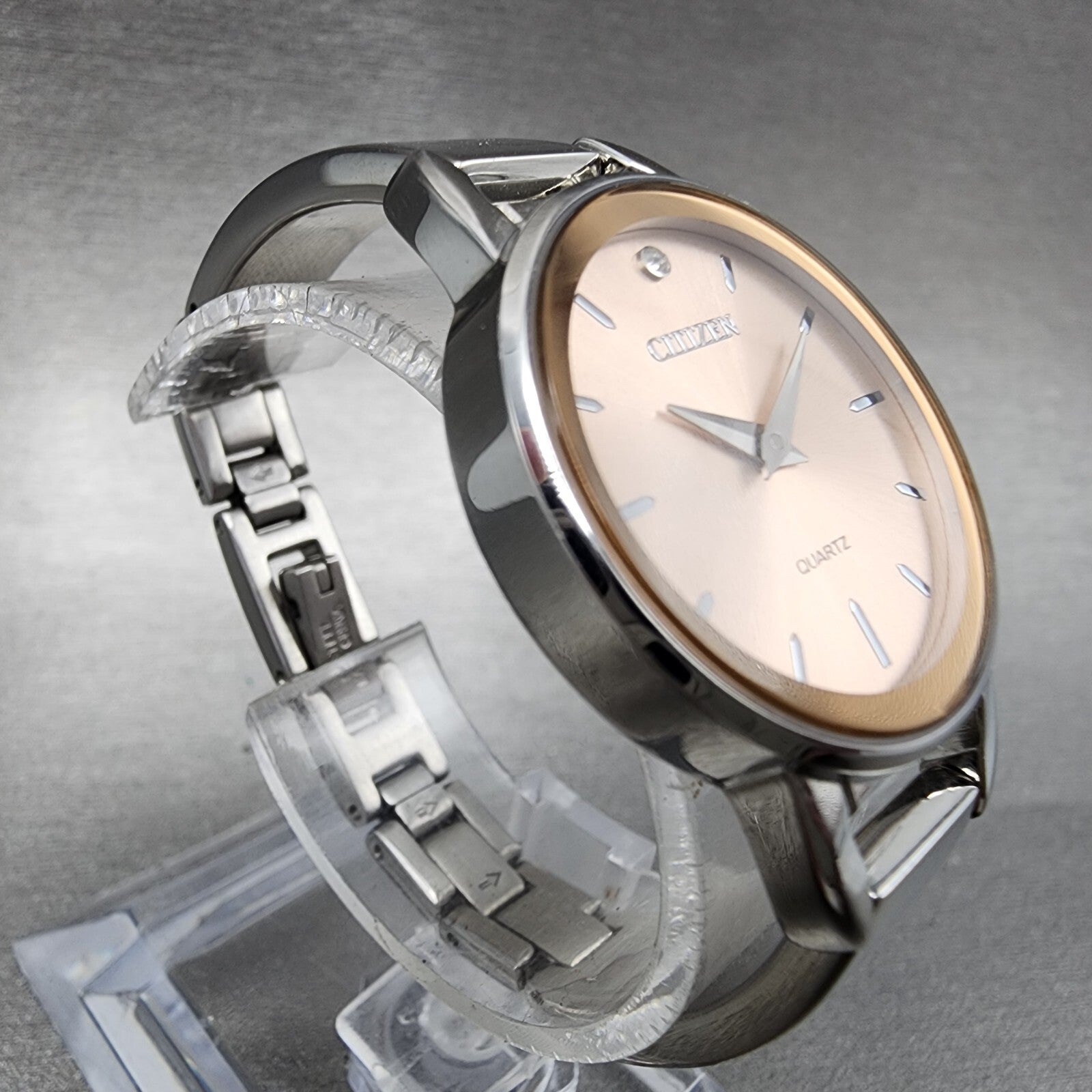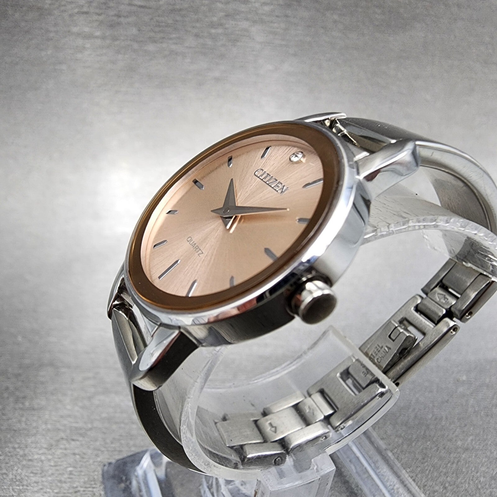Citizen Watch Women 27mm Pink Dial Stainless Steel Round Bangle New Battery