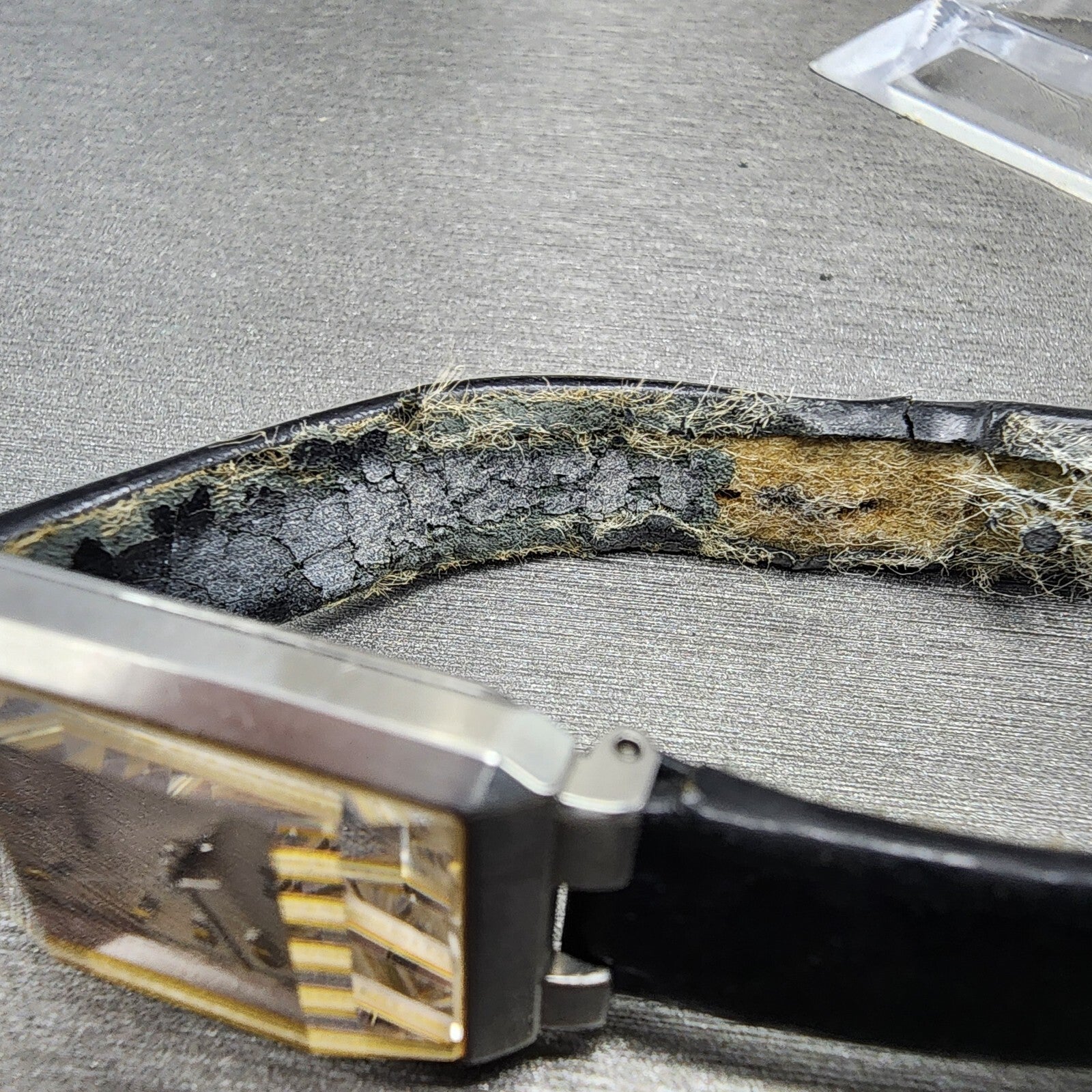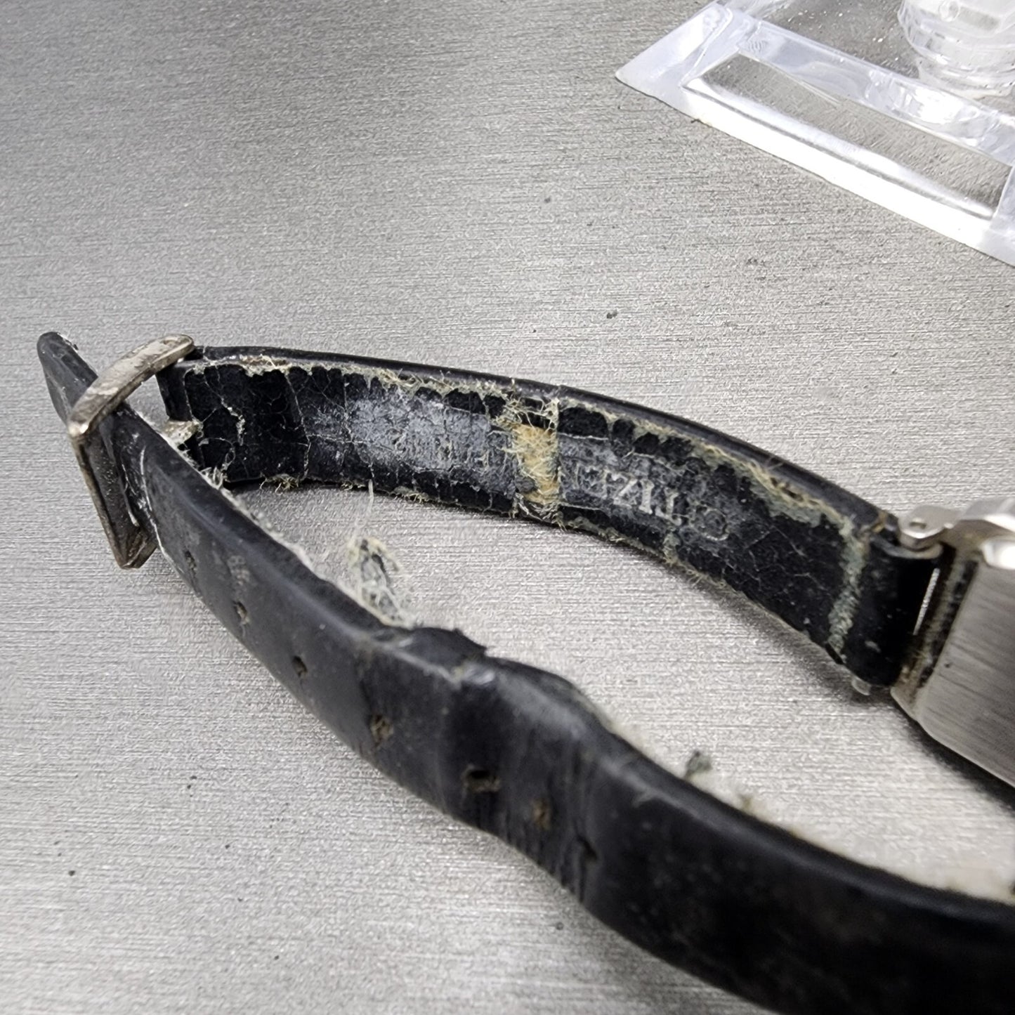 BAND IS WORN AND NEEDS TO BE REPLACED. This watch has been used but is in good working condition. There is scratches on the watch. please refer to pictures.