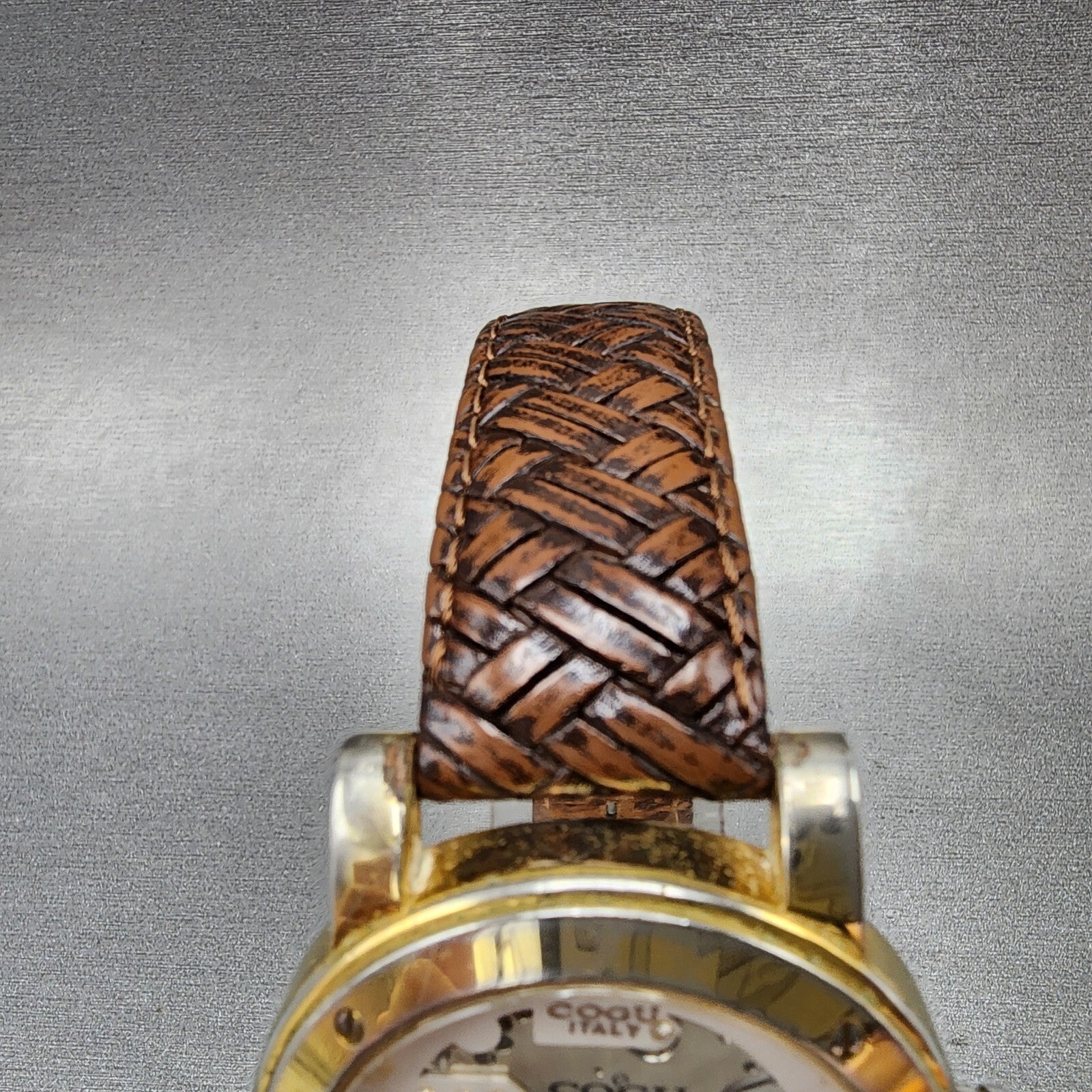 COGU Skeleton Watch Men 42mm Skeleton Dial Gold Tone Automatic Leather Band Runs