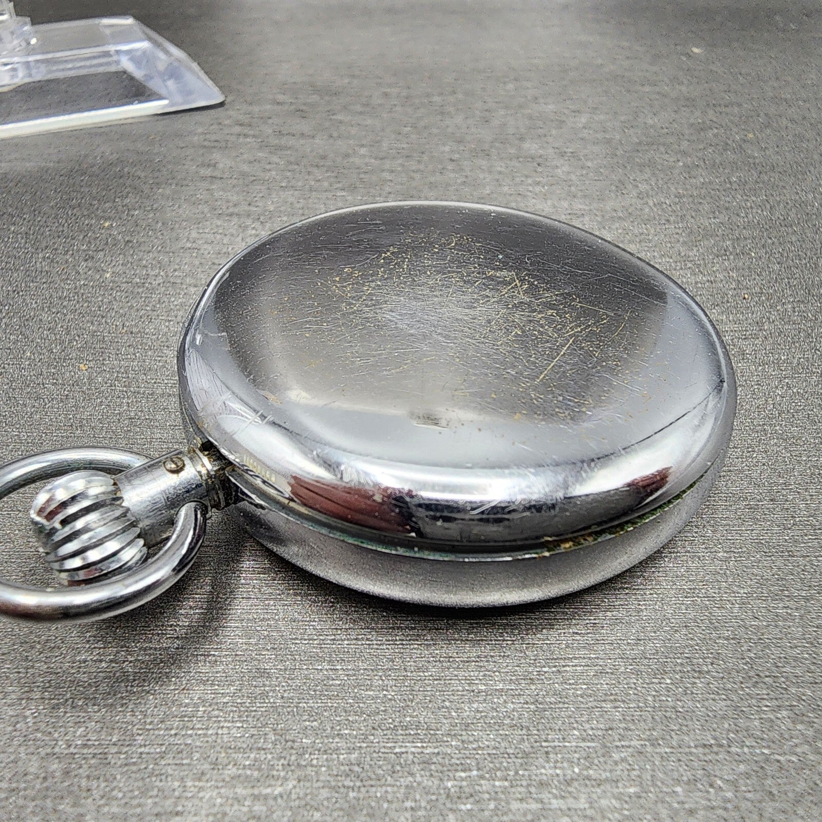 DOES NOT HAVE A CRYSTAL AND THE CASE BACK DOES NOT CLOSE PROPERLY. This item has been used and has scratchers on the case and crystal. The watch does not work and will need to be repaired.