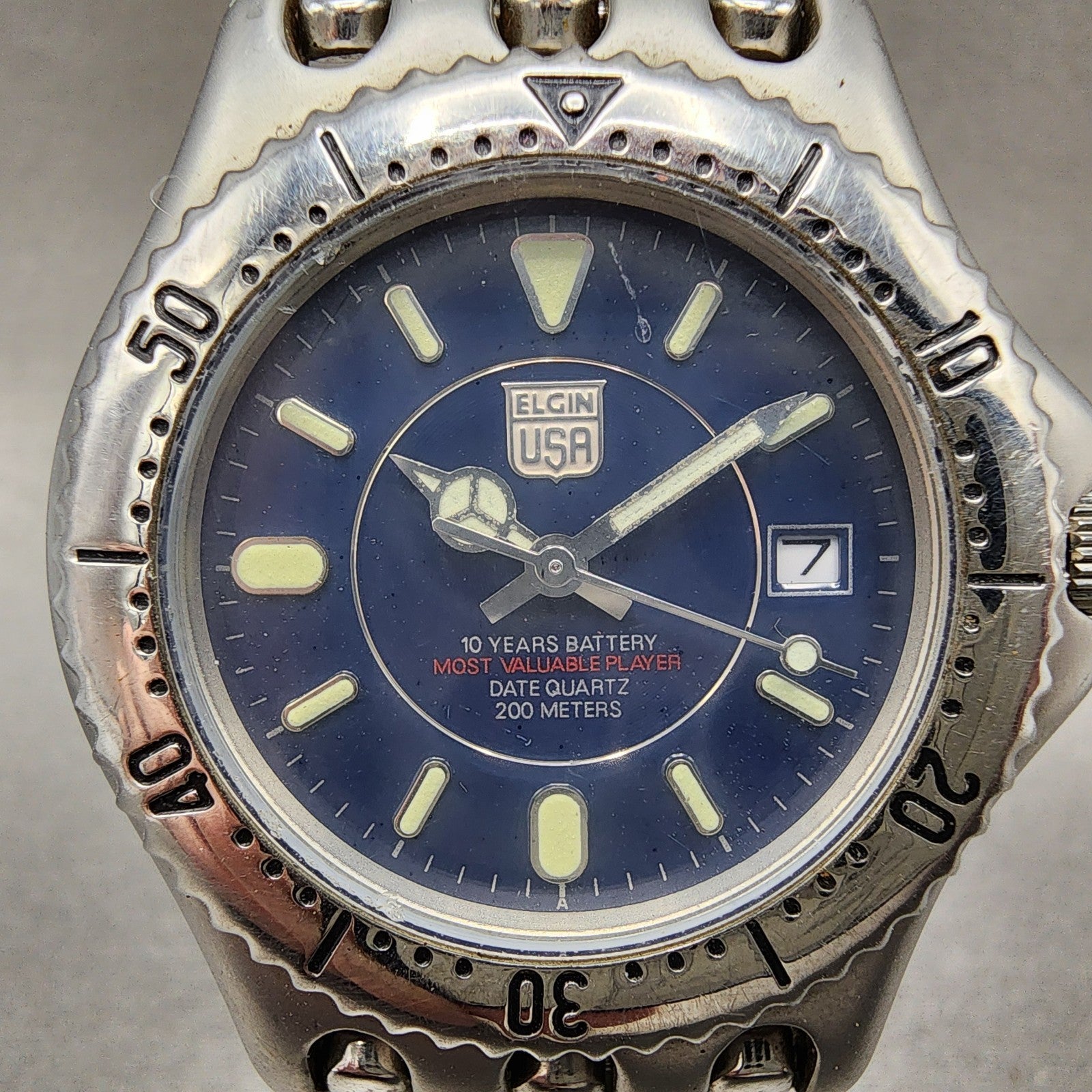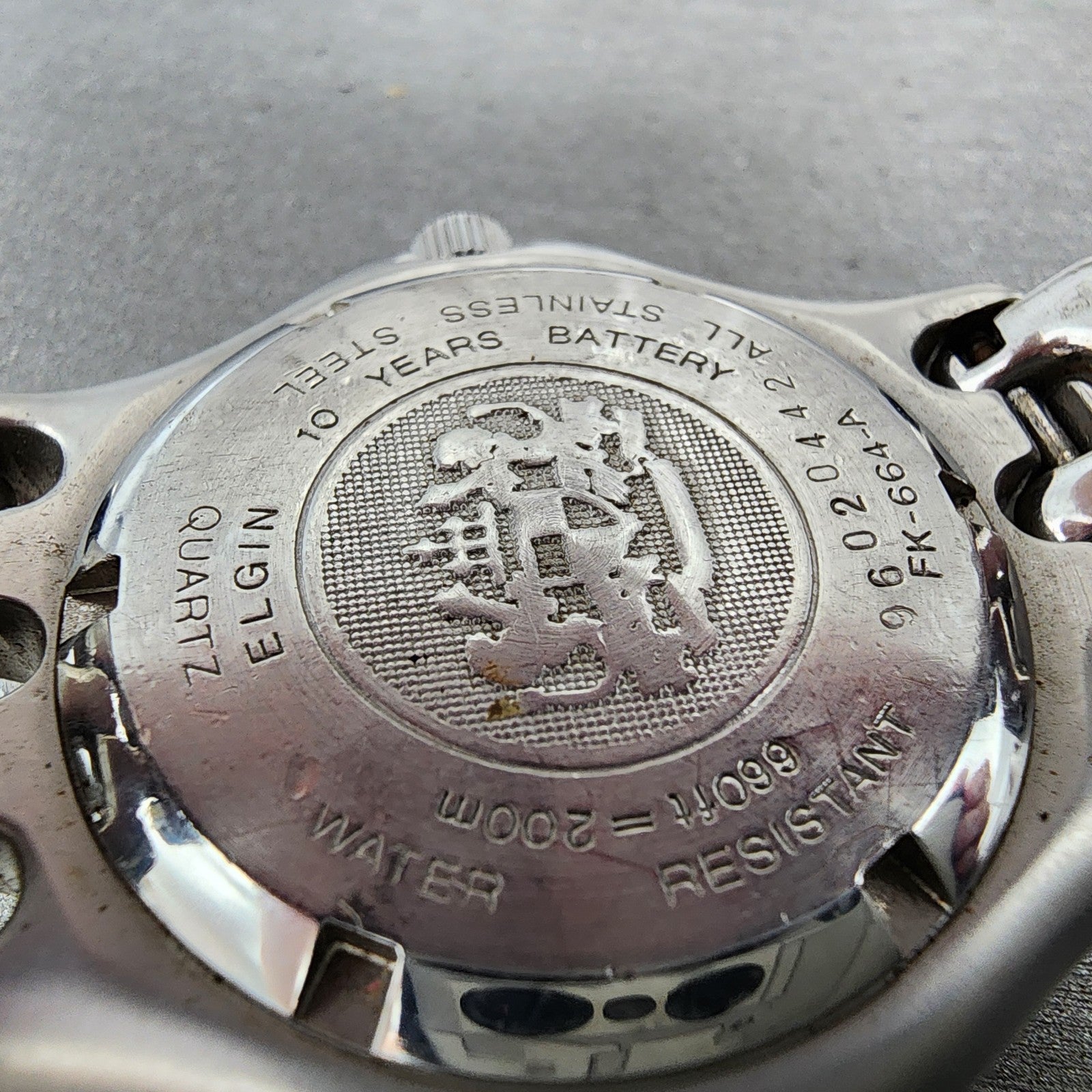 Elgin Dive Watch Men 38mm Black Dial Steel Date FK-664A Round New Battery