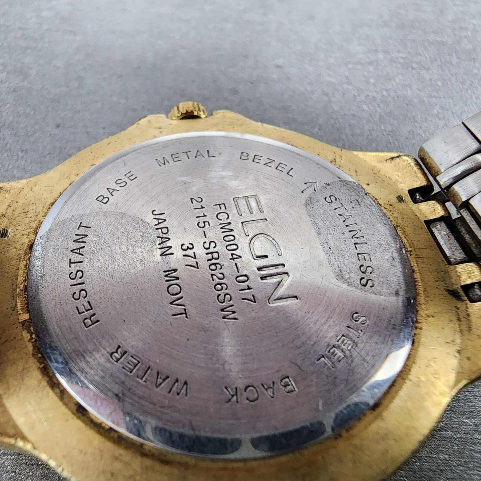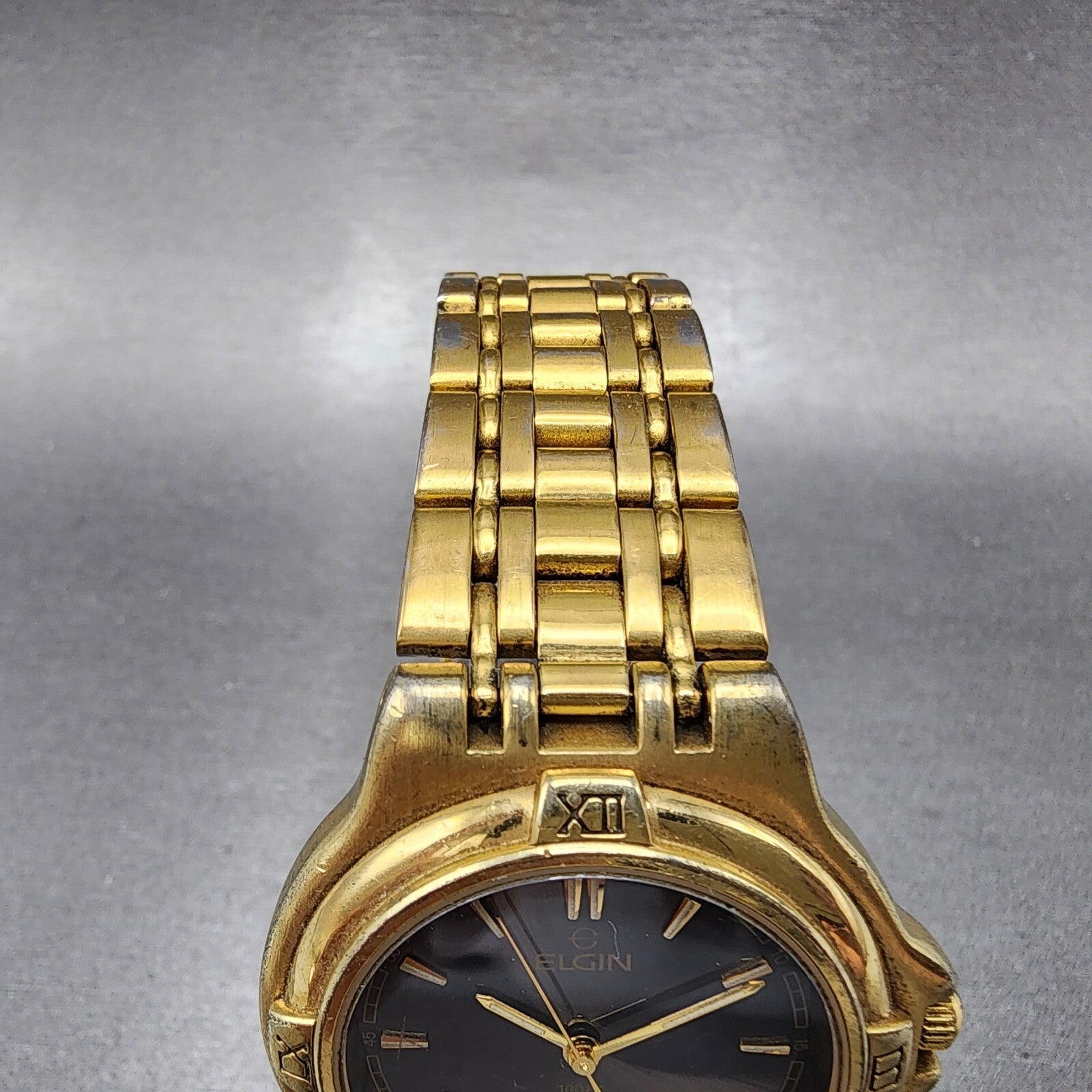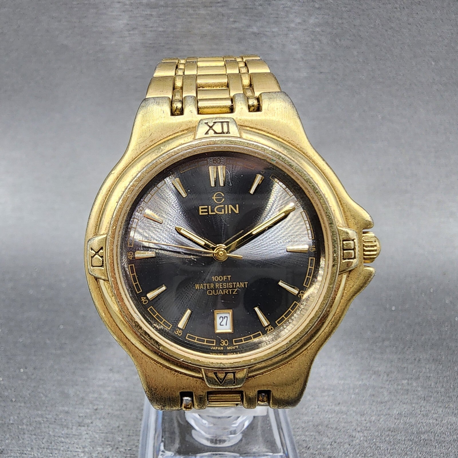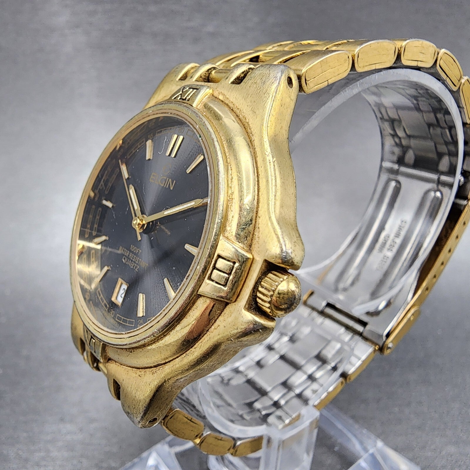 Elgin Watch Men 38mm Black Dial Gold Tone Date Round FCM004-017 New Battery
