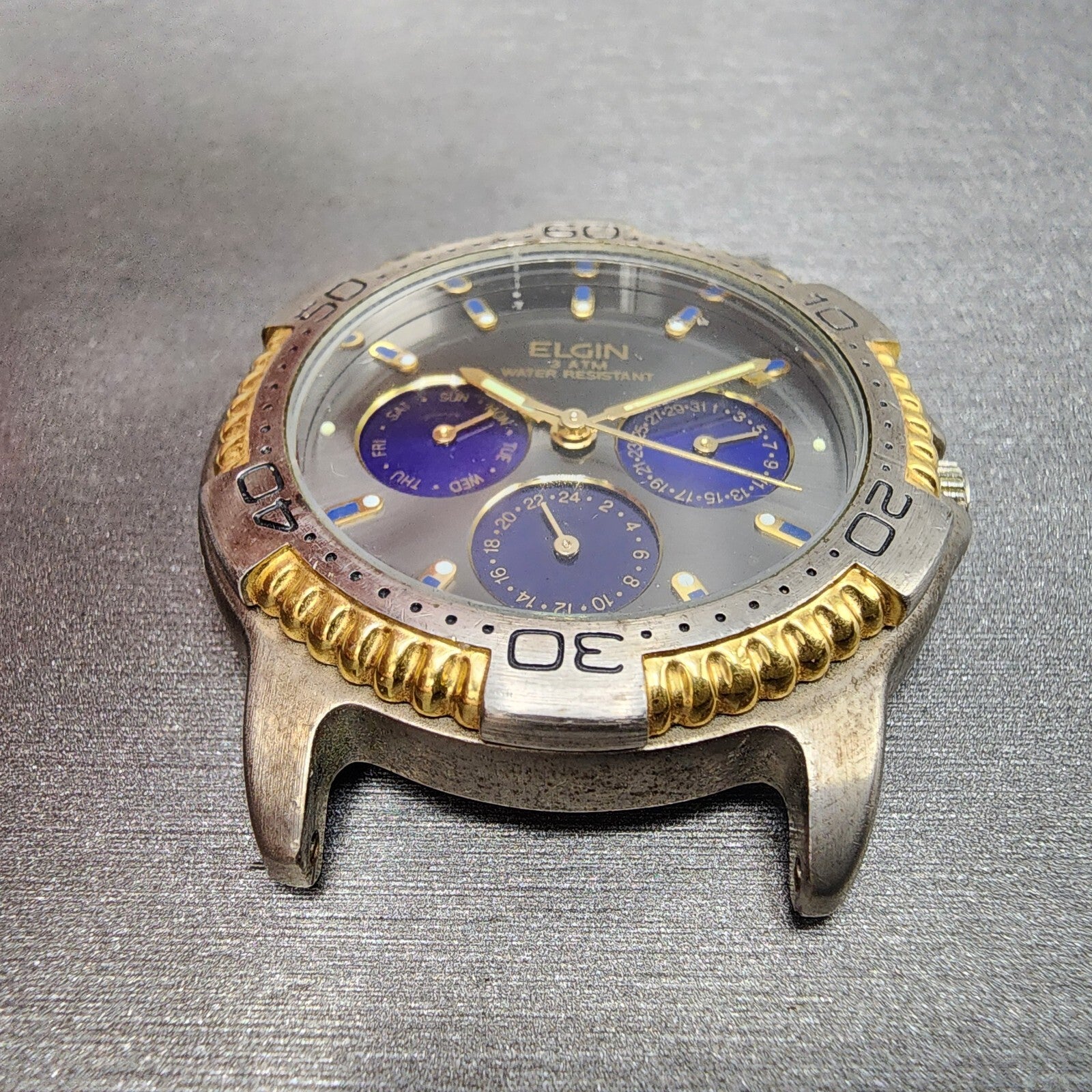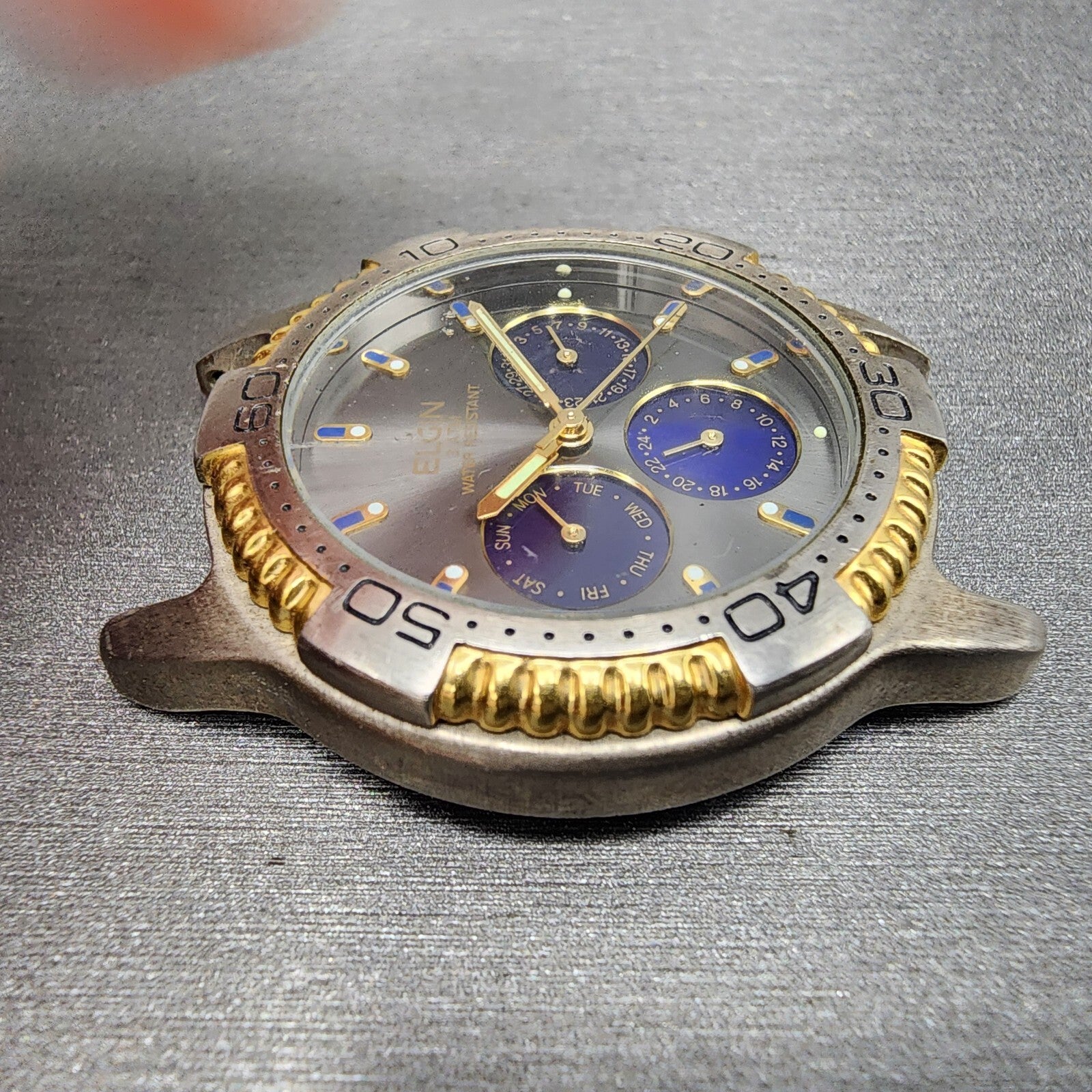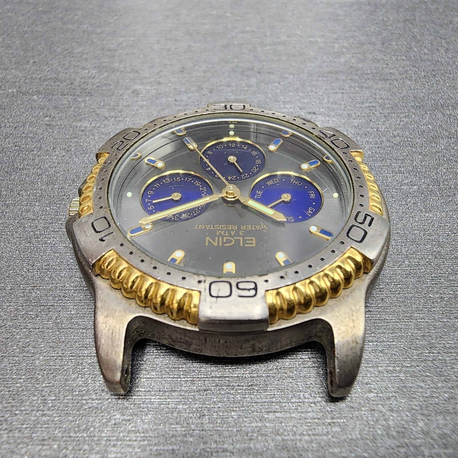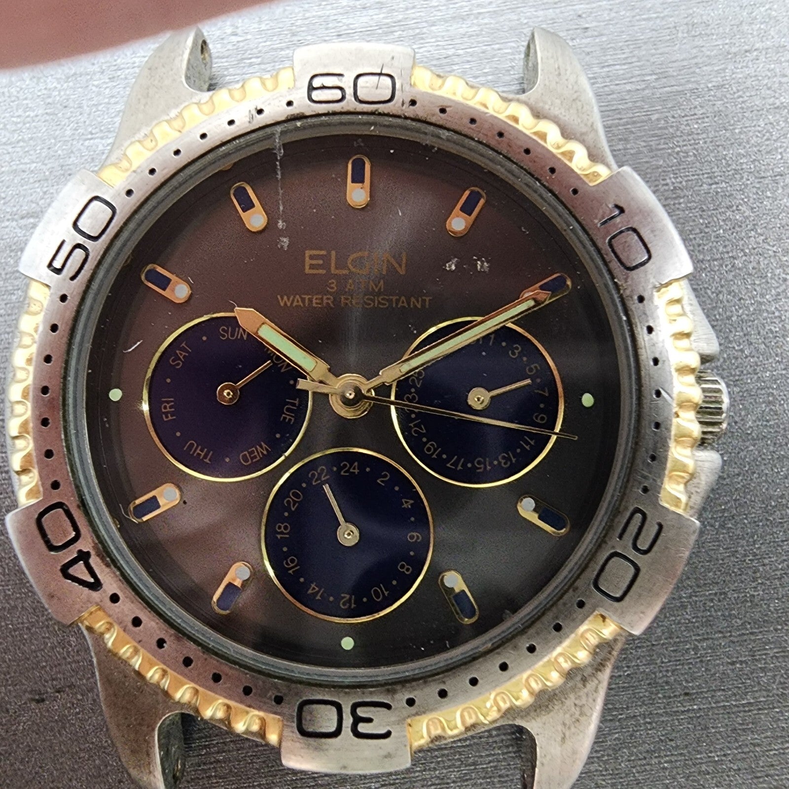 Elgin Watch Men 40mm Gray Dial Two Tone Daydate Round 6P29 FS701 New Battery