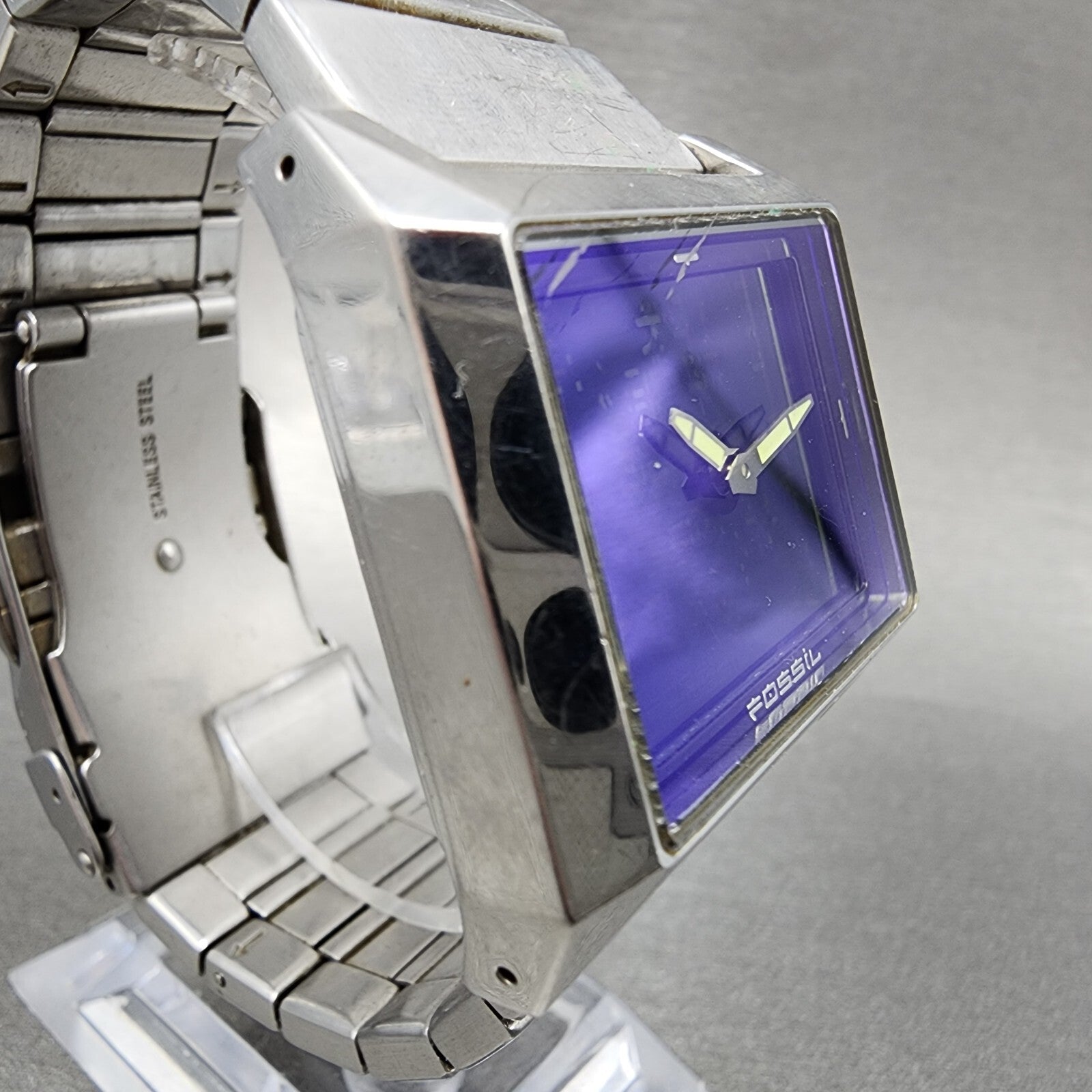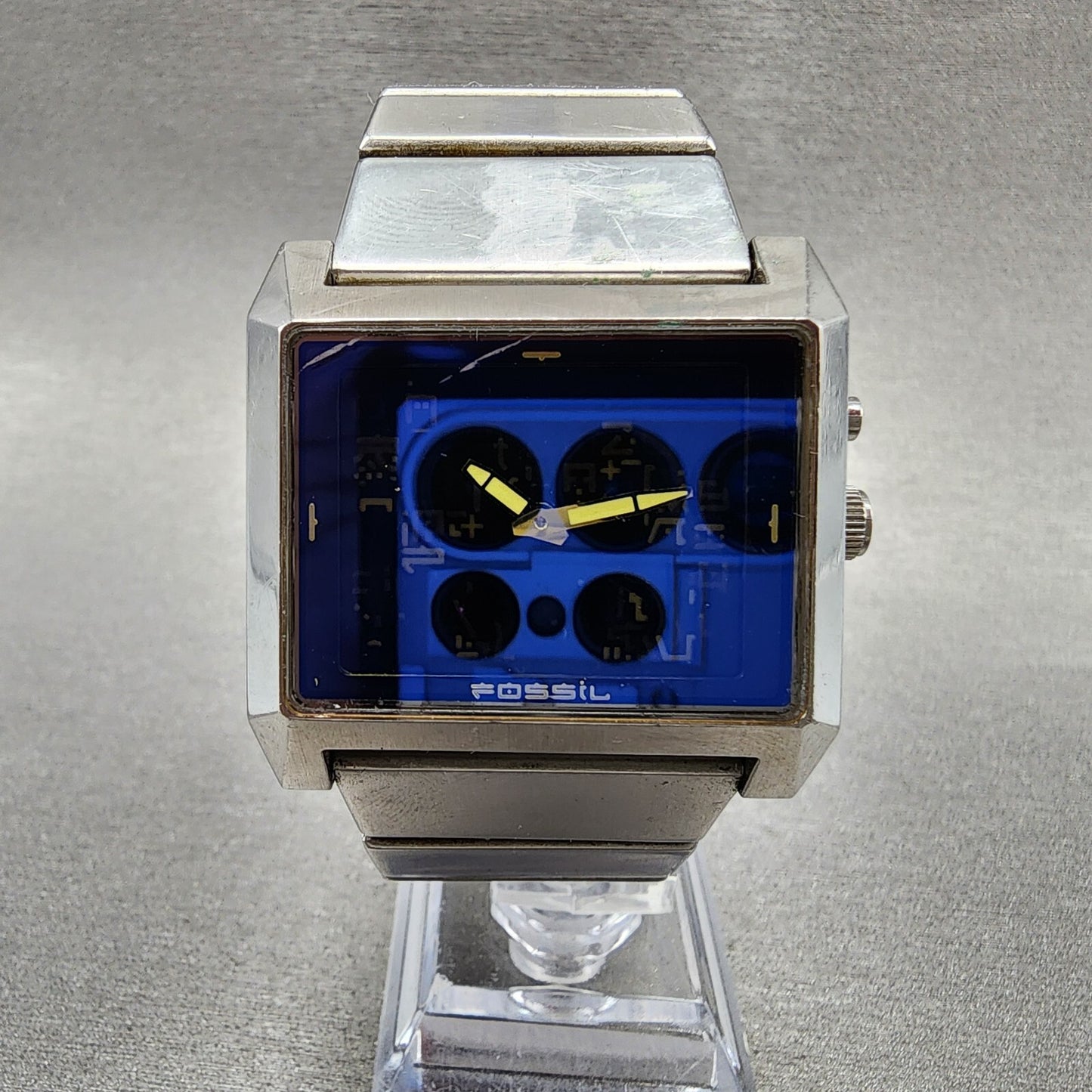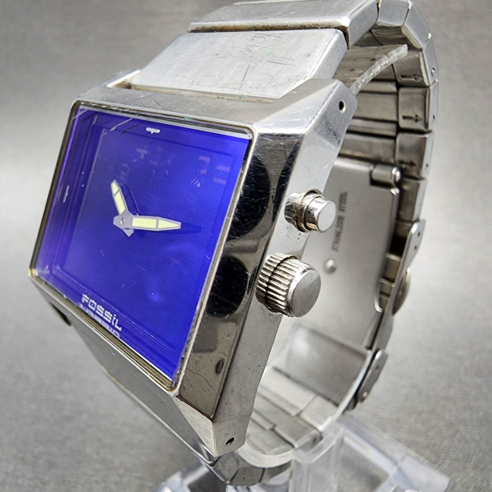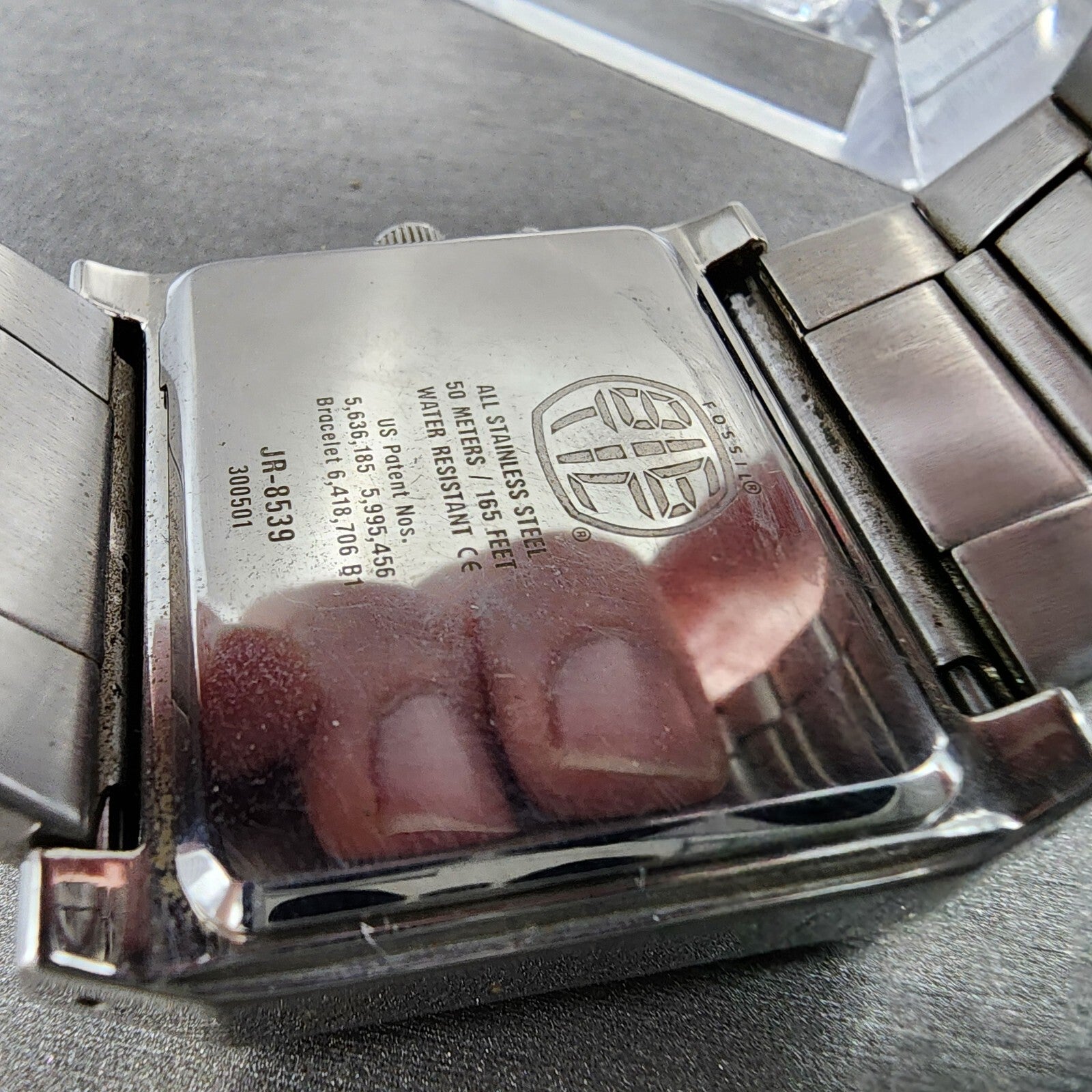Fossil Bigtic Tank Watch Men 38mm LCD Dial Steel Rectangle JR-8539 New Battery