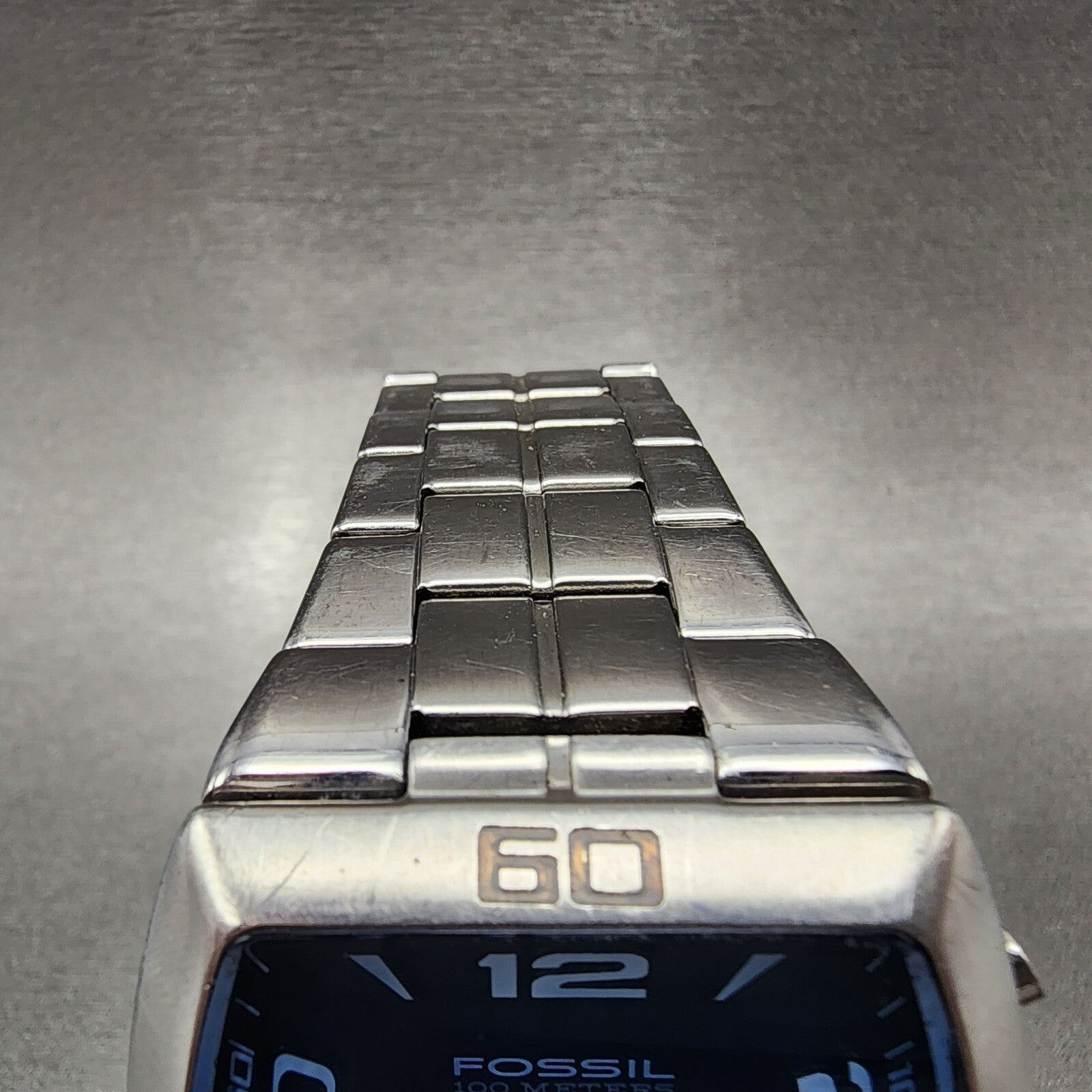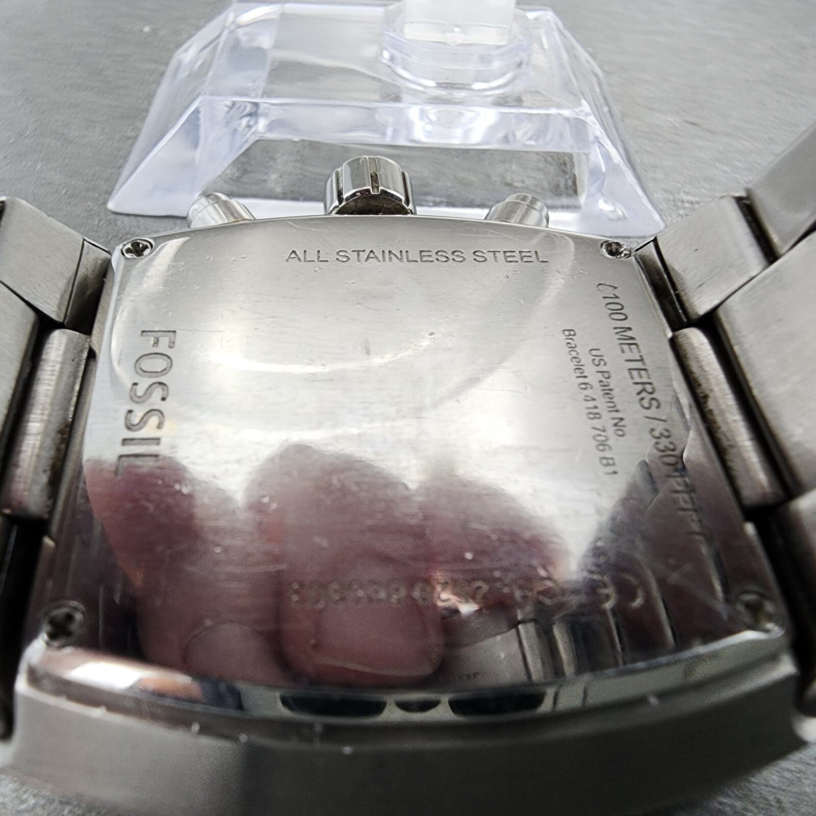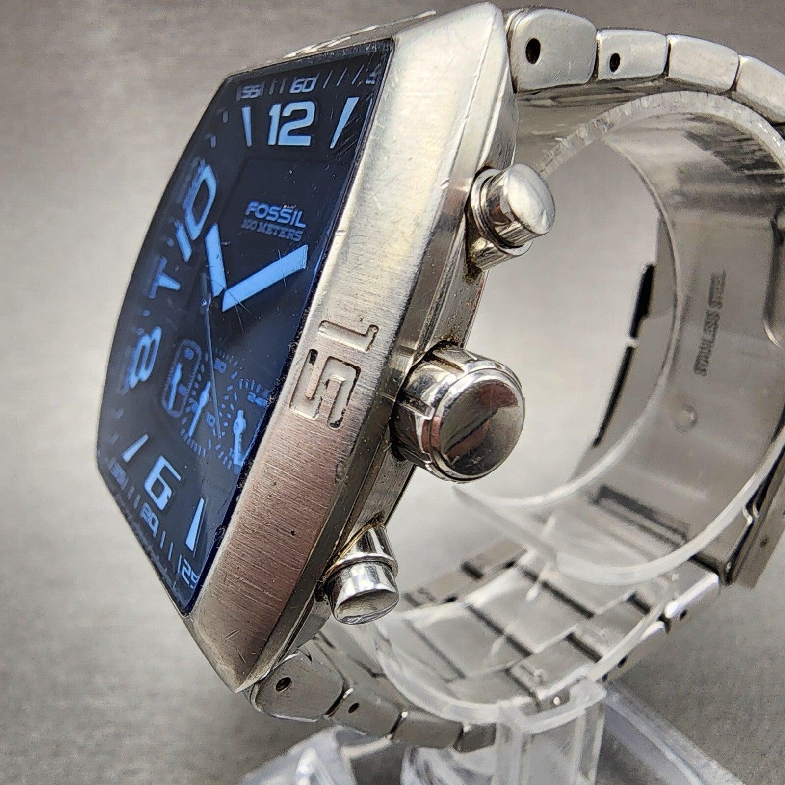 Fossil Chronograph Watch Men 41mm Black Dial Steel Rectangle CH2528 New Batt