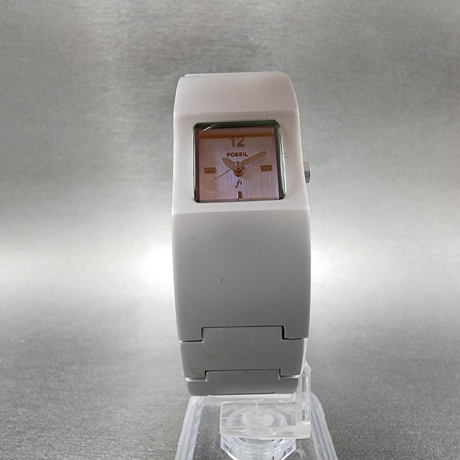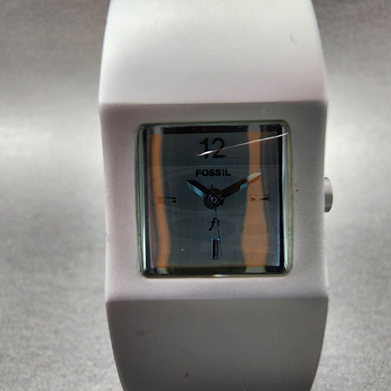 Fossil F2 Watch Women 20mm Silver Dial Aluminum Case Rectangle ES-9054 New Batt