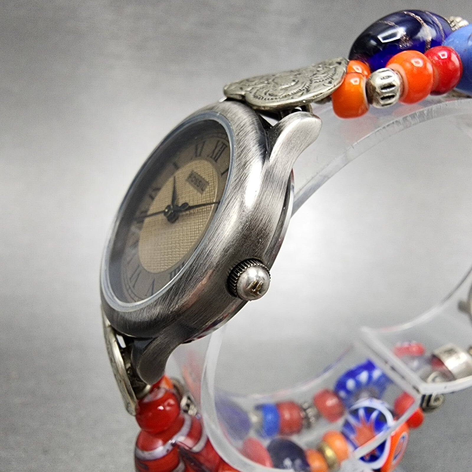 This watch has been used but is in good working condition. There is scratches on the watch. please refer to pictures.