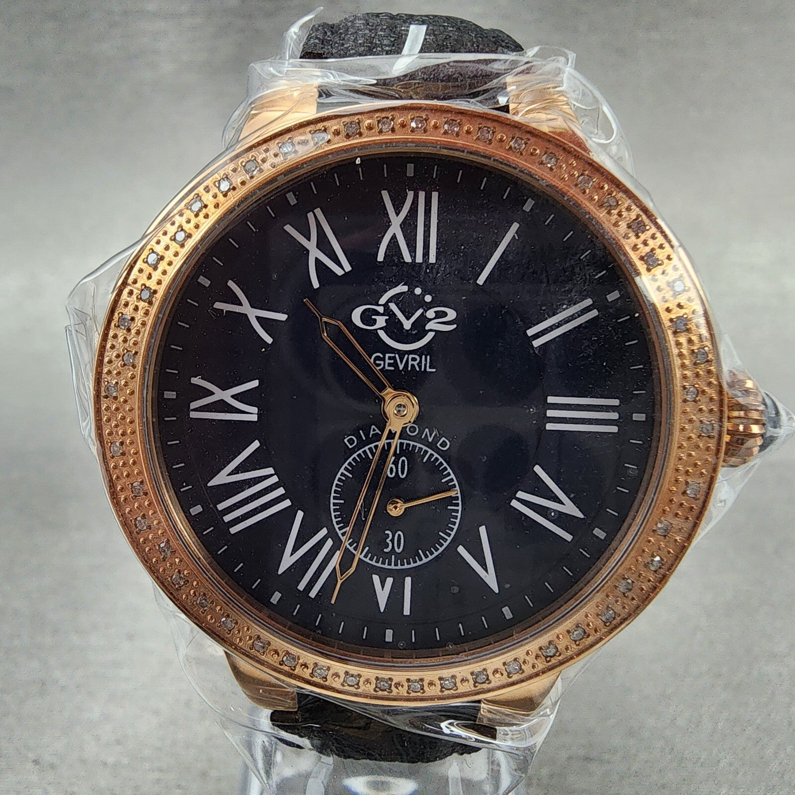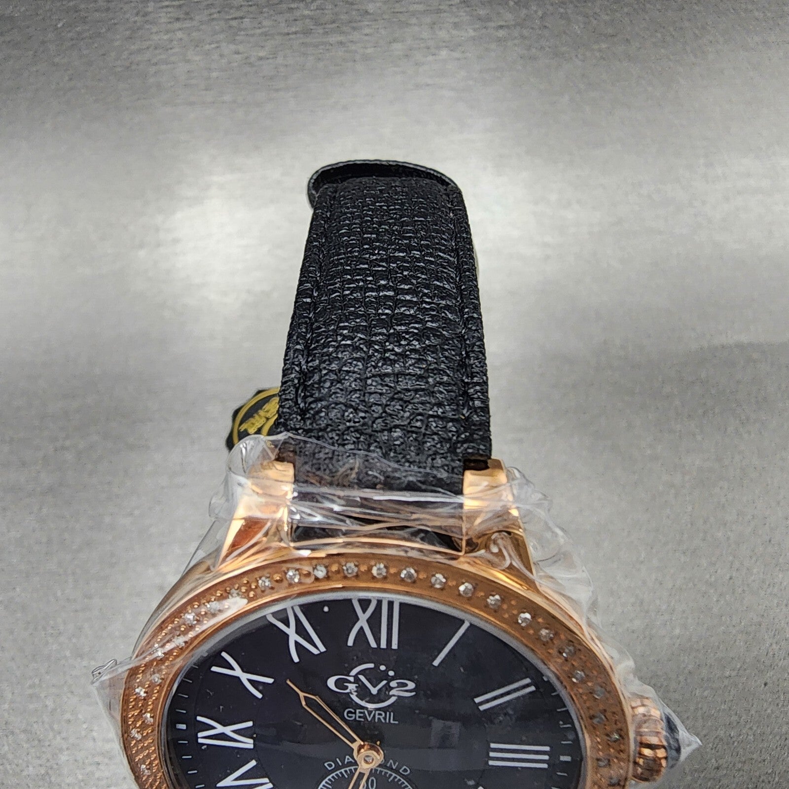 Gevril GV2 Astor Watch Women 40mm Blue Dial Rose Gold Tone Diamond Bezel 9109