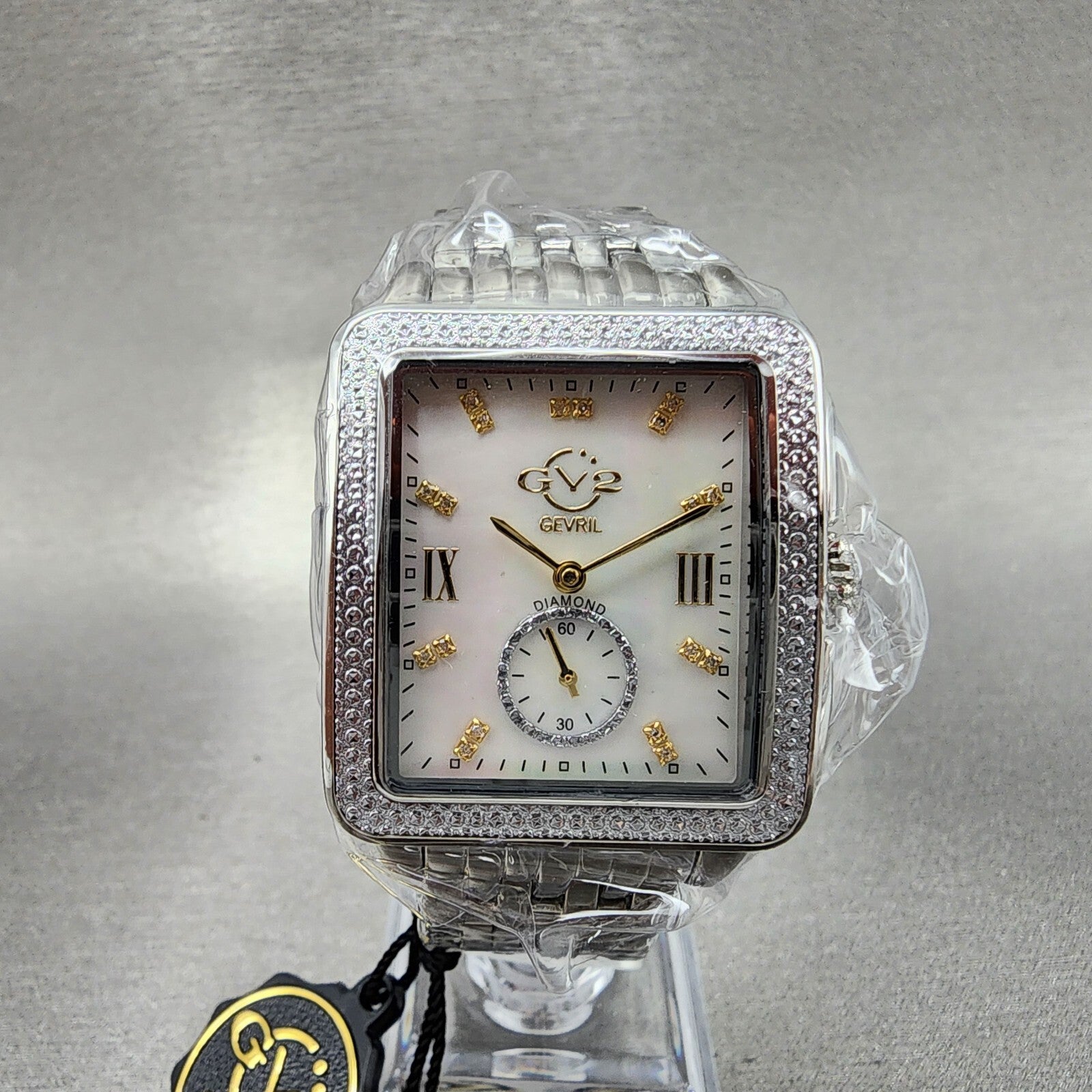 Gevril GV2 Bari Tank Watch Women 31mm MOP Dial Steel Diamond bezel Small Seconds