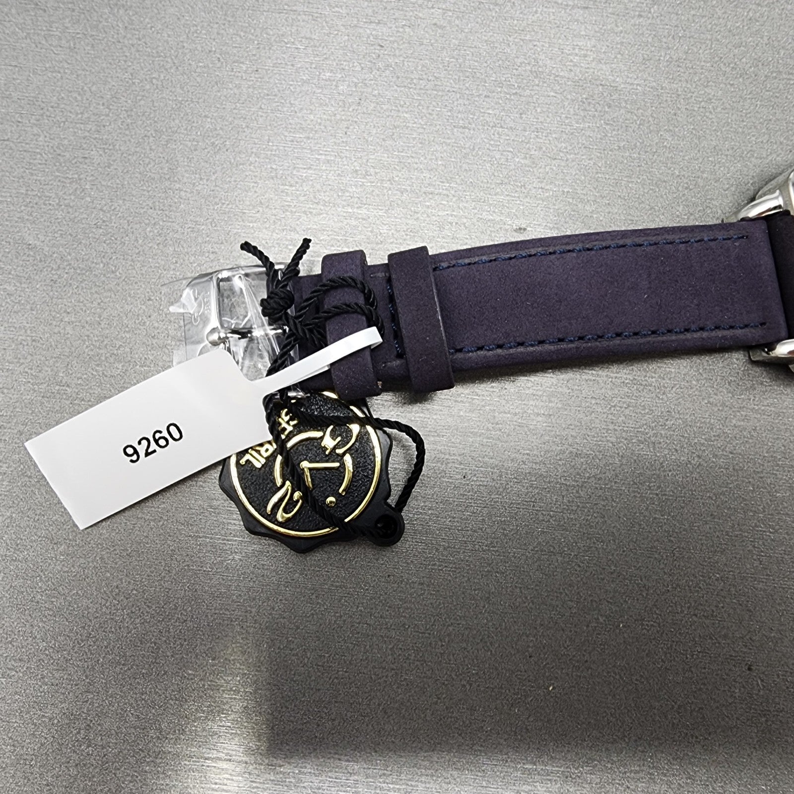 This watch is new but has some light blemish's or scratches on the case and bracelet from handling. please refer to pictures. The watch does not come with a box but does Include cards.