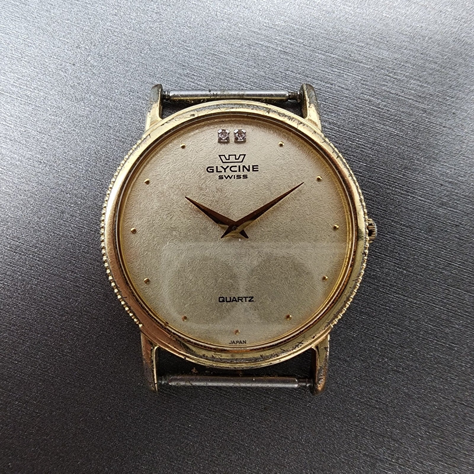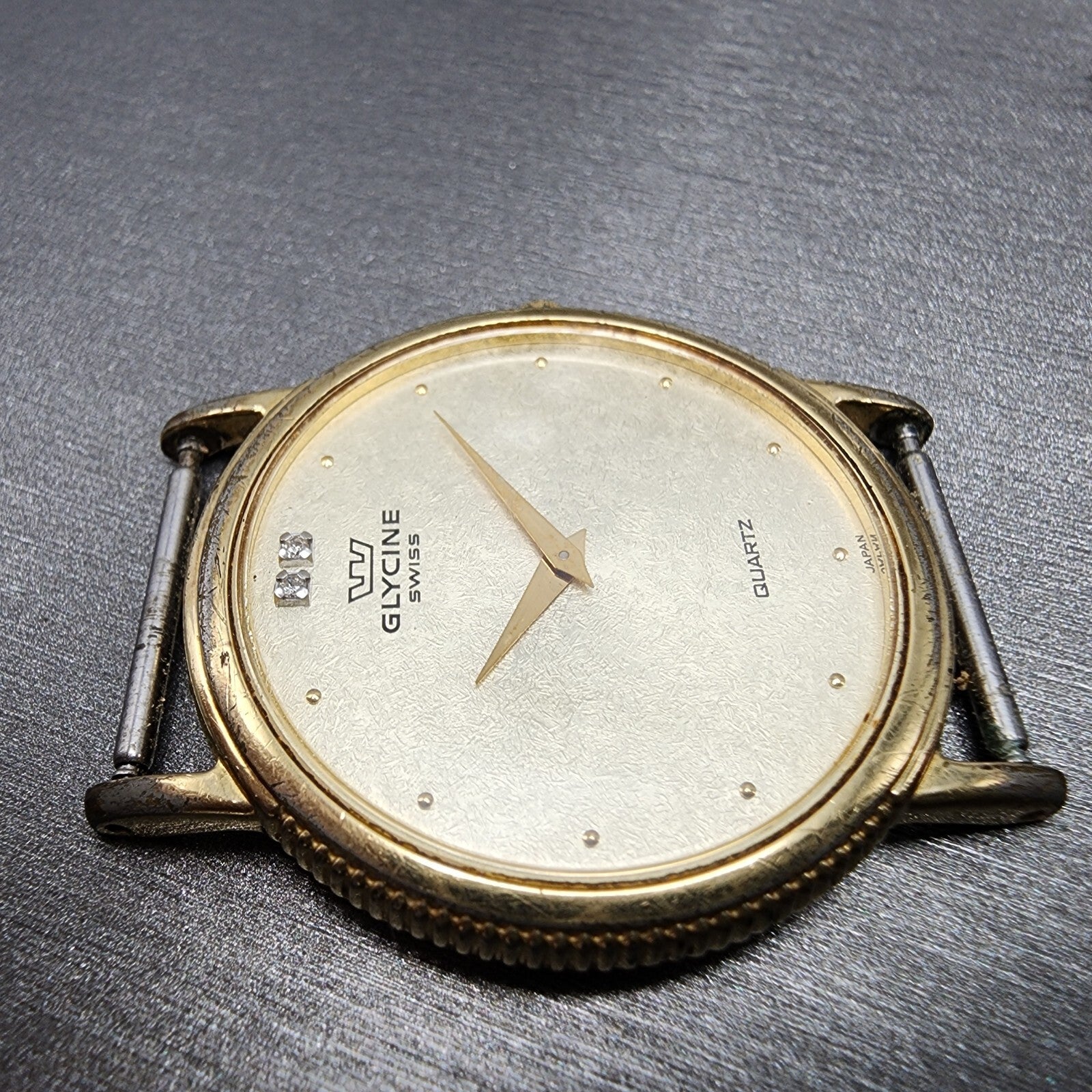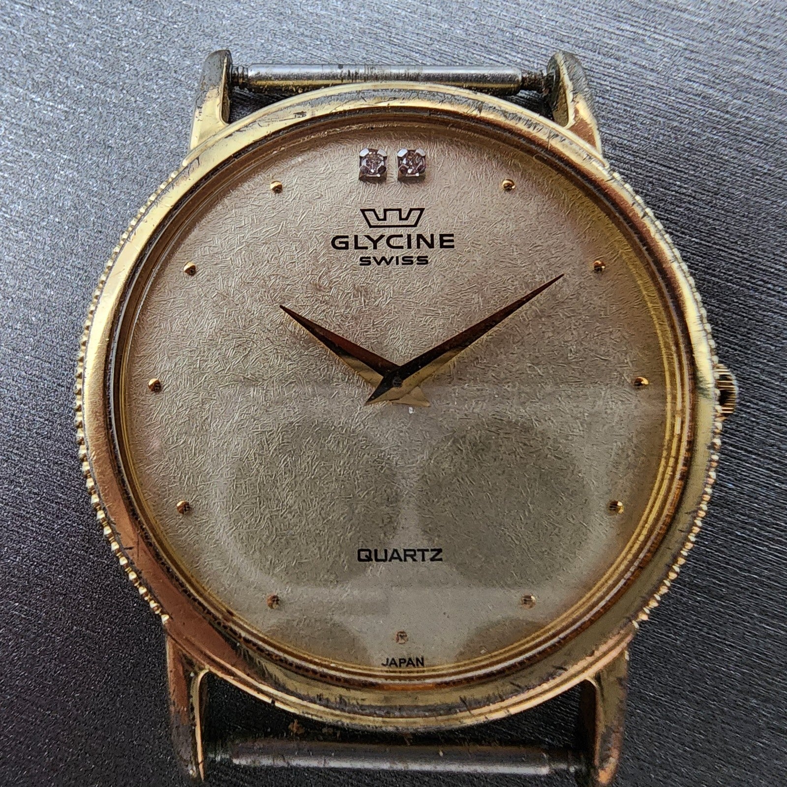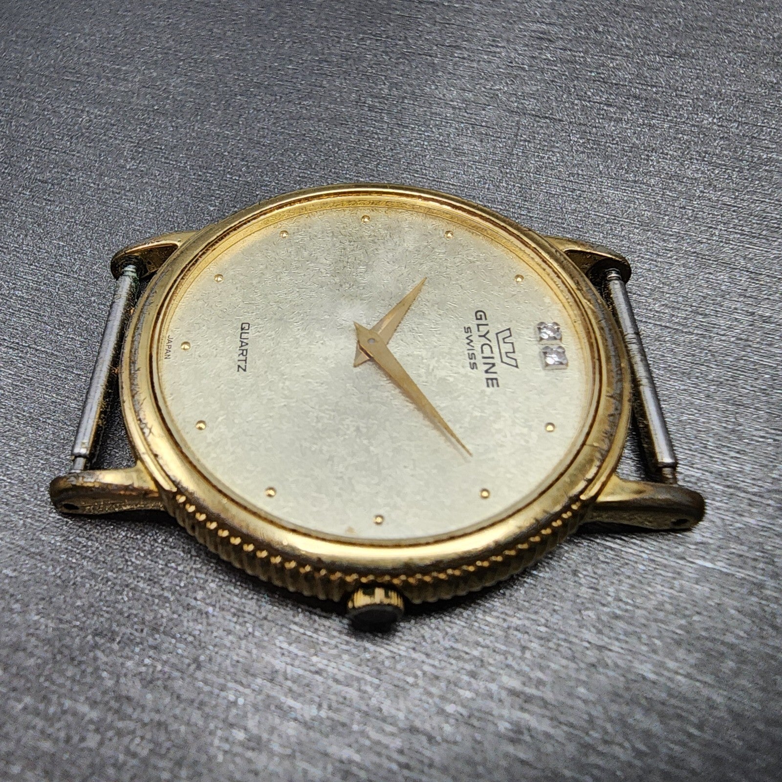 Glycine Watch Men 32mm Champagne Dial Gold Tone Round New Battery