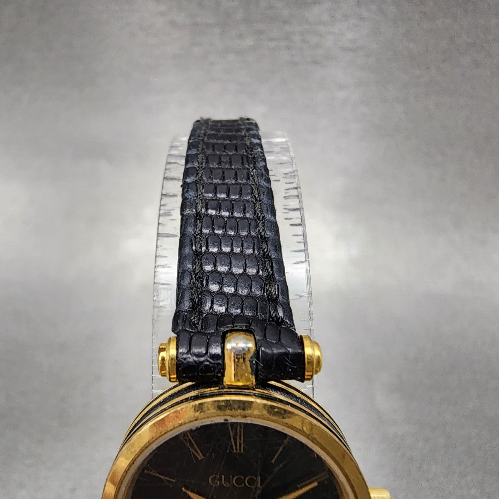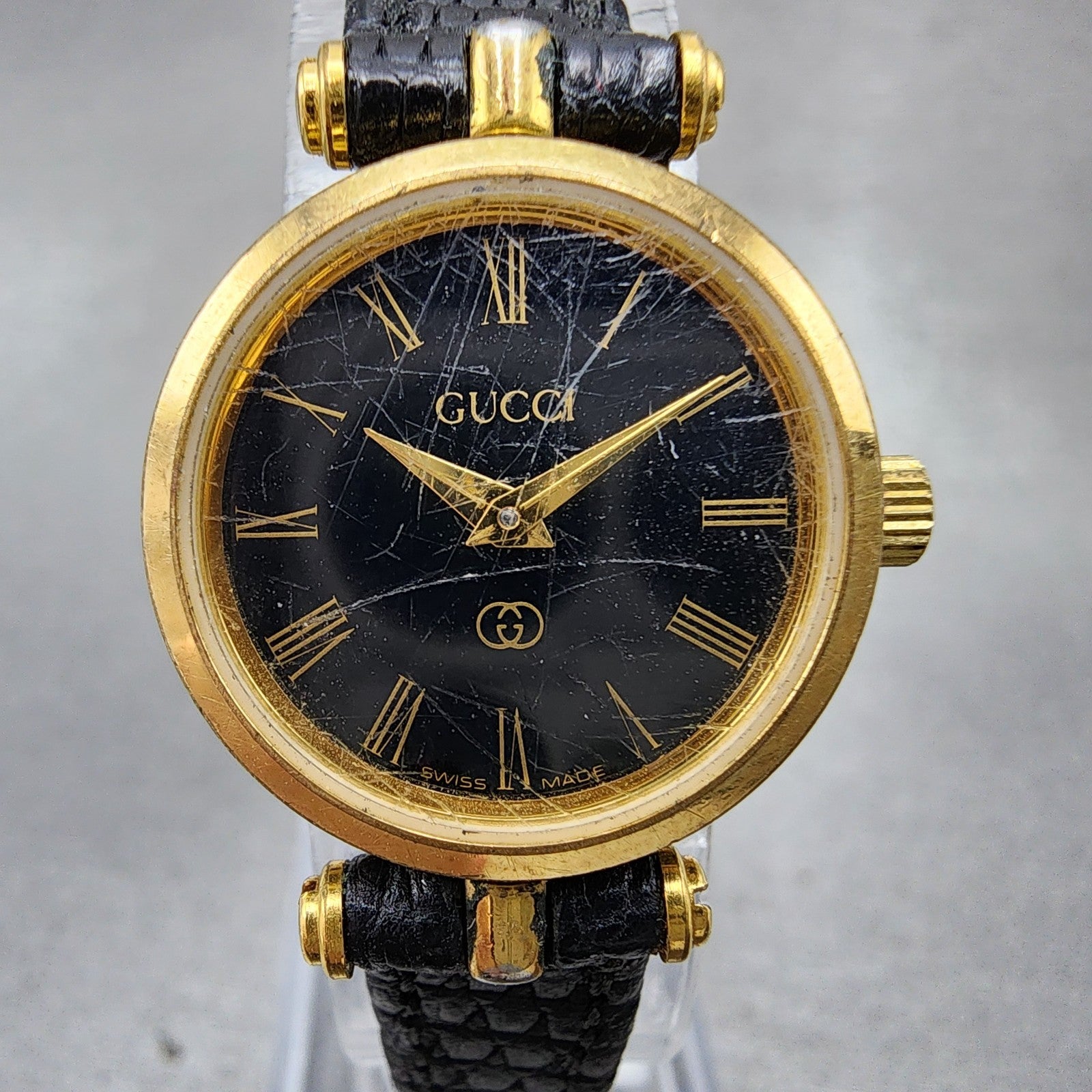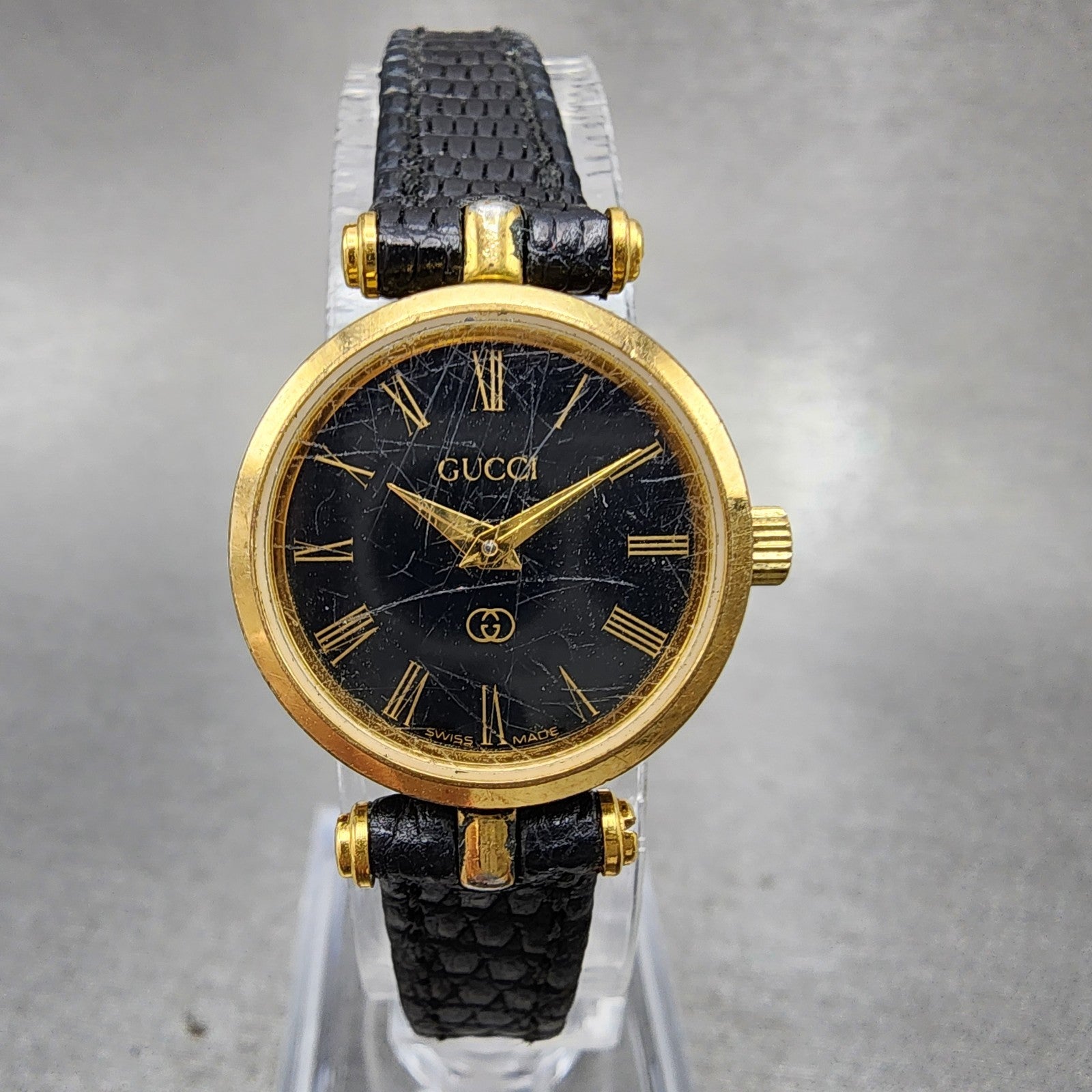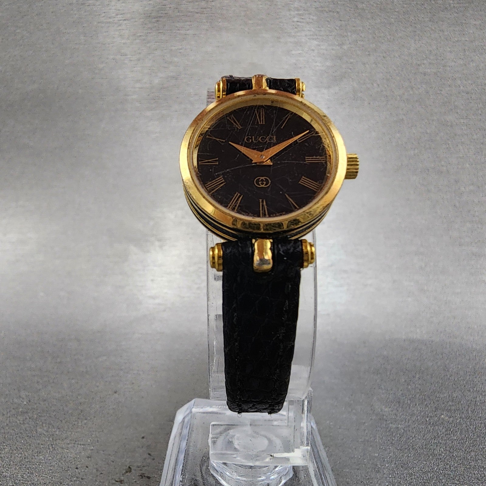 Gucci 2000L Watch Women 21mm Black Dial Gold Tone Round VTG New Battery