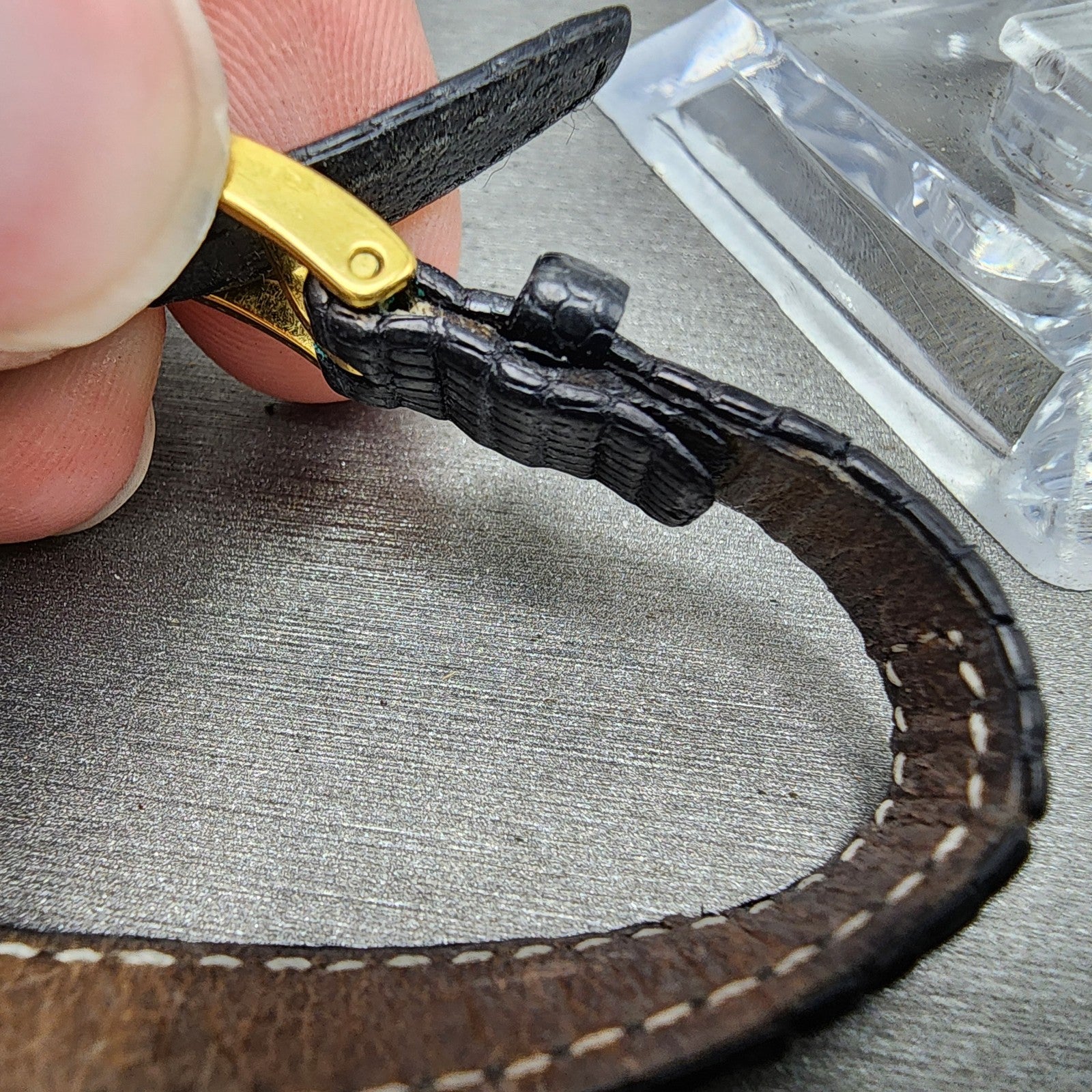 BAND IS WORN OUT NEAR THE BUCKLE AND NEEDS TO BE REPLACED. This watch has been worn but is in good working condition.
