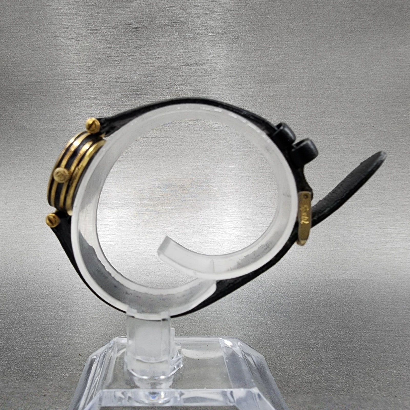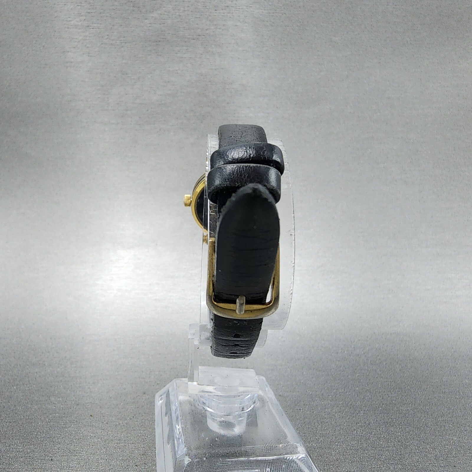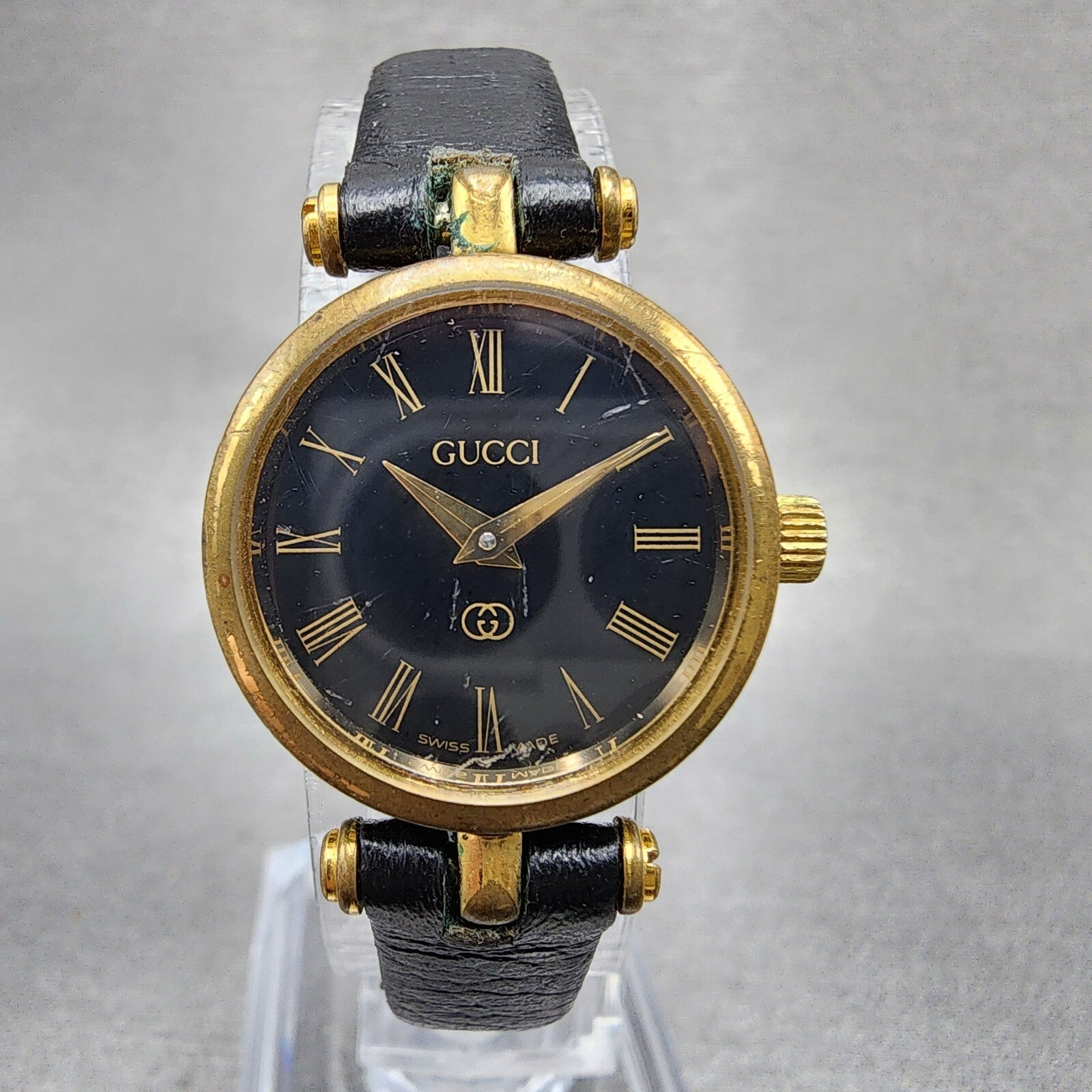Gucci 2000L Watch Women 22mm Black Dial Gold Plated Round New Battery