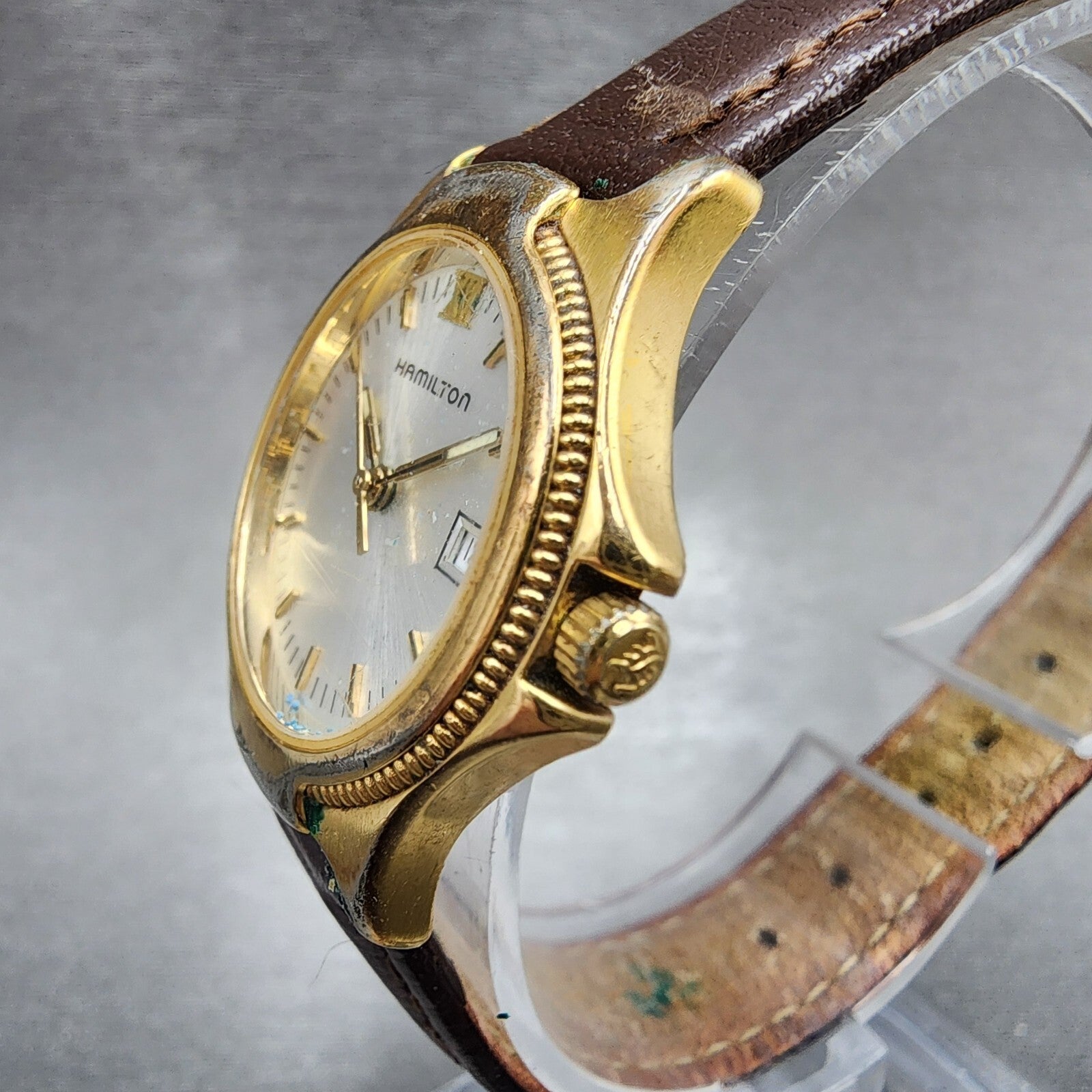 Hamilton Watch Women 26mm Silver Dial Gold Tone Date Round 8460 PARTS