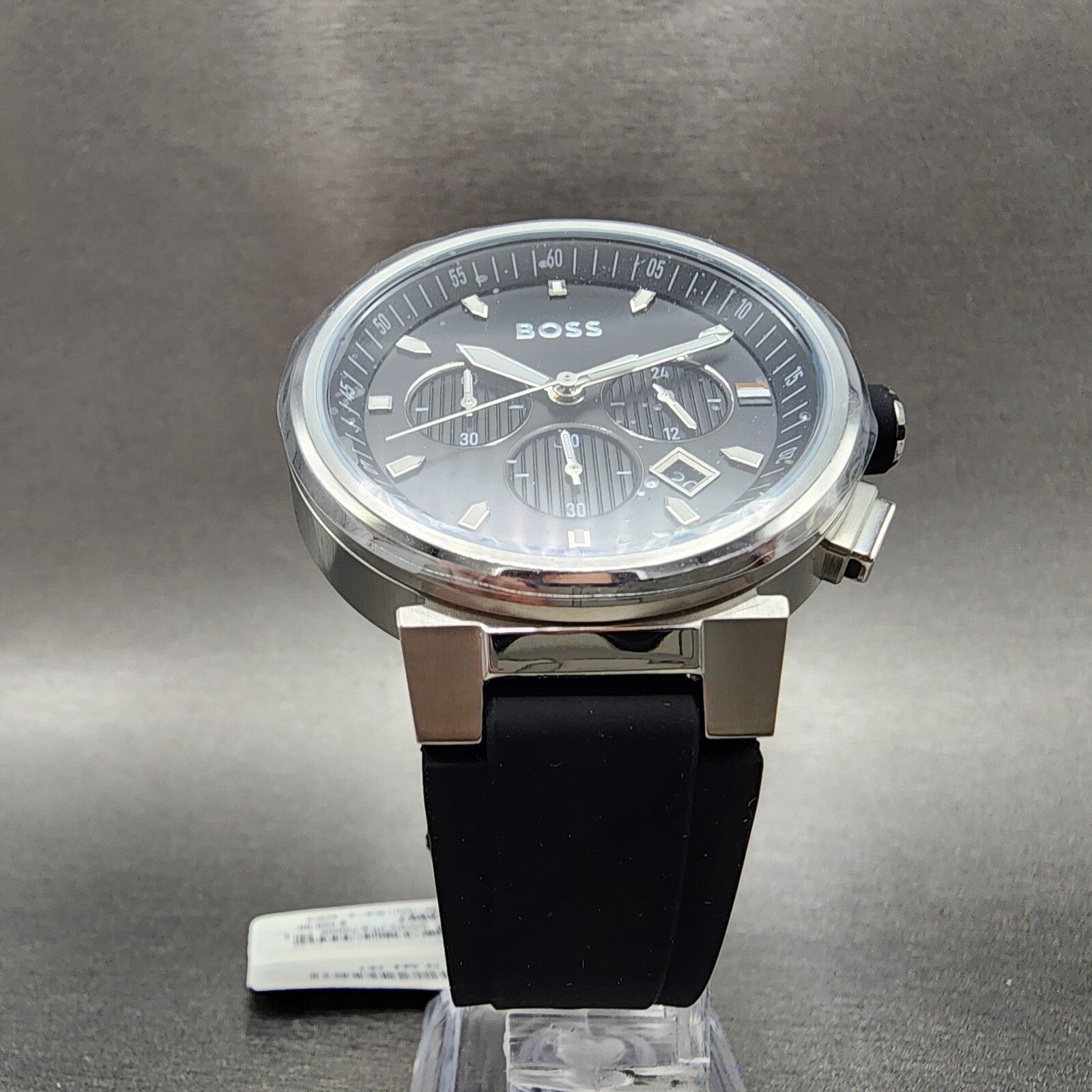 Hugo Boss Chronograph Watch Men 44mm Black Dial Steel Date Round 1513997