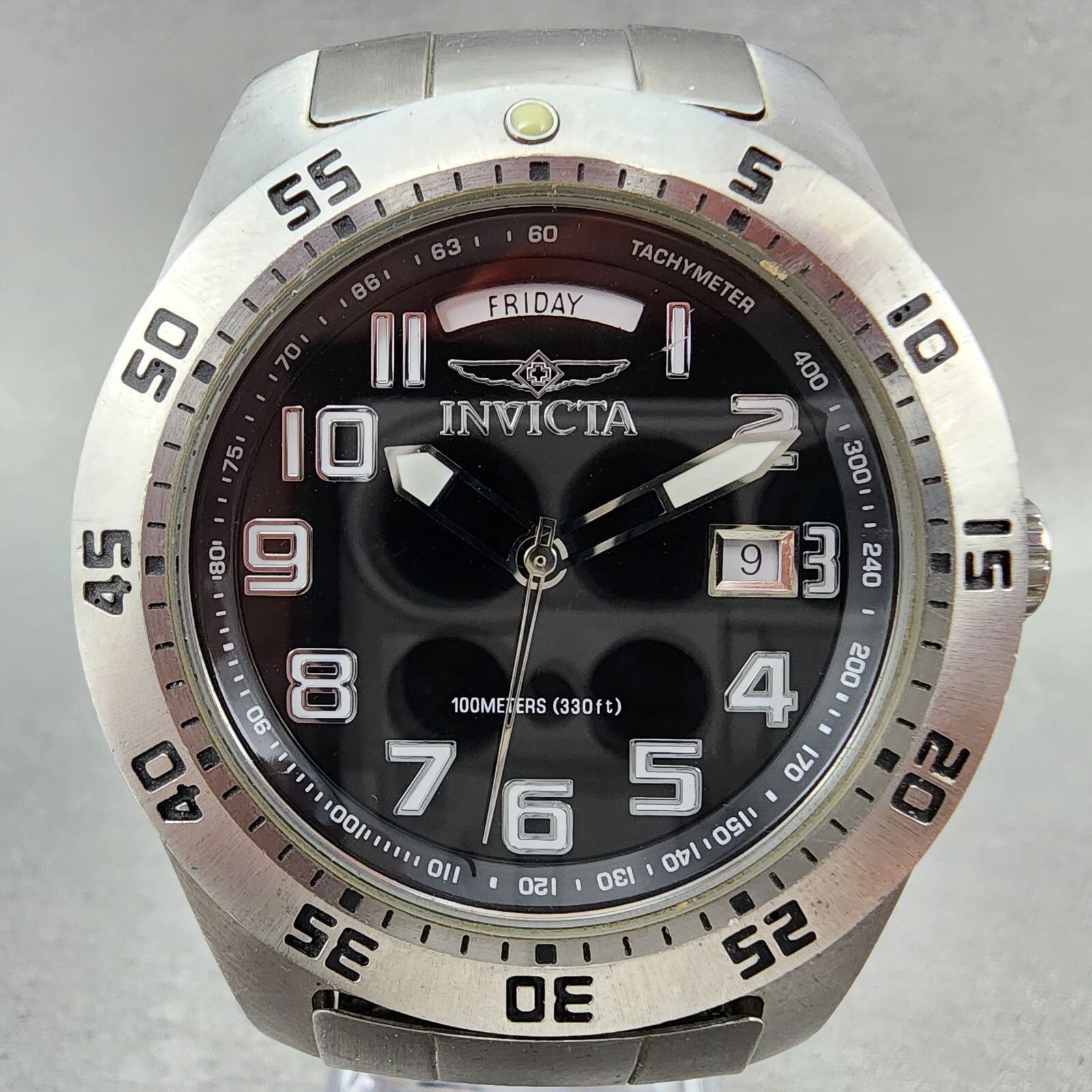 Invicta Watch Men 44mm Black Dial Silver Tone Daydate Round New Battery