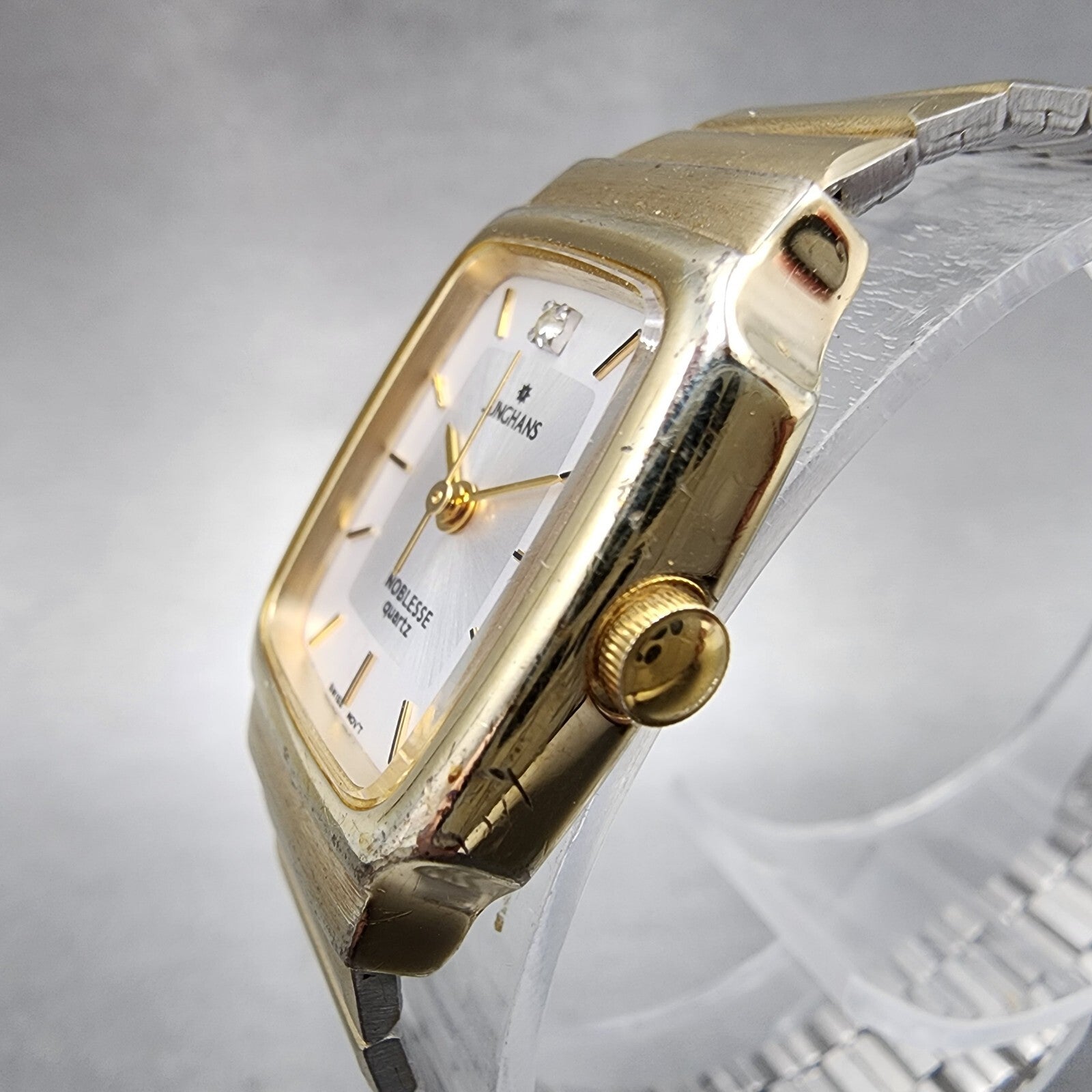 Junghans Noblesse Watch Women 19mm White Dial Gold Tone Rectangle New Battery