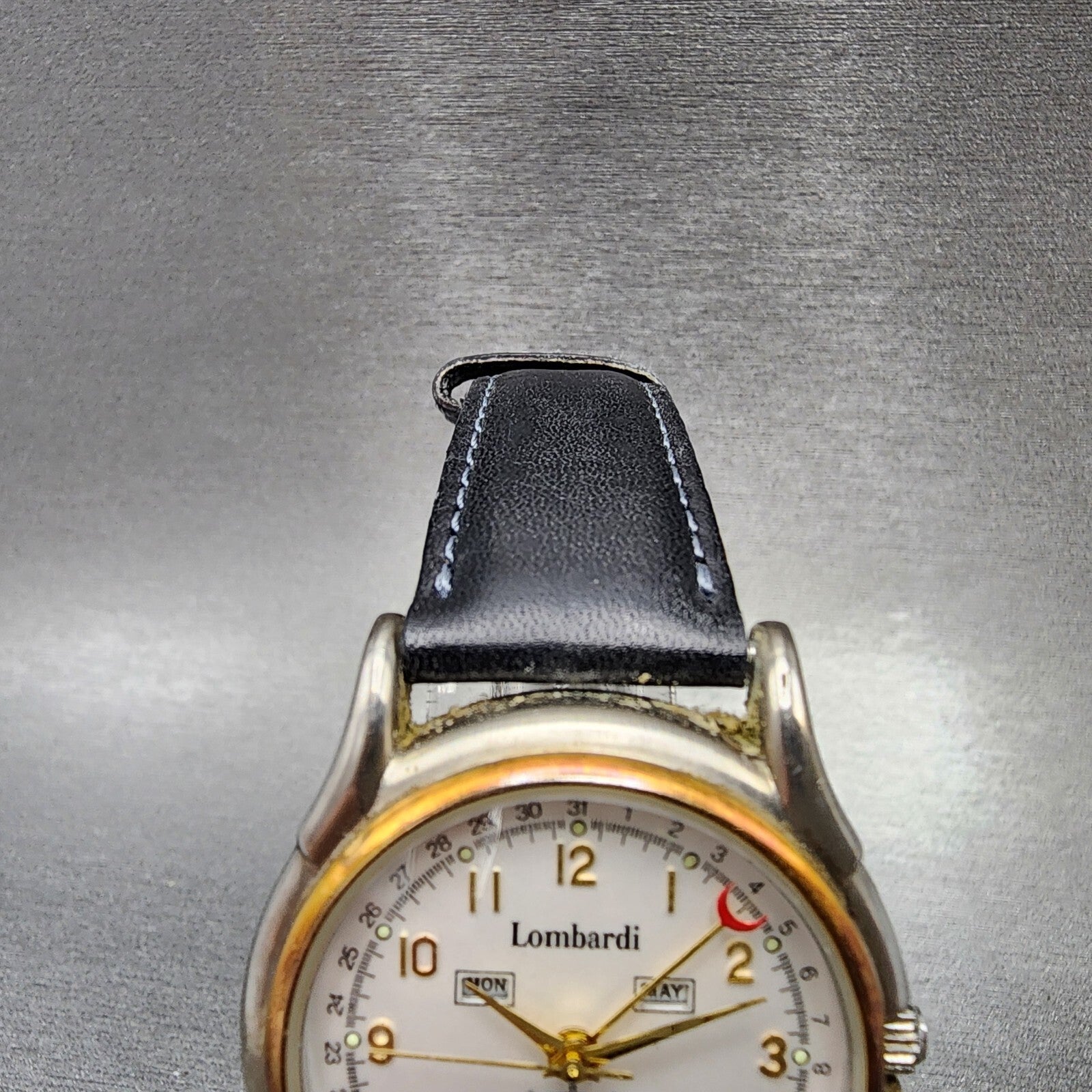 Lombardi Triple Calendar Moonphase Watch Men 35mm White Dial Two Tone New Batt
