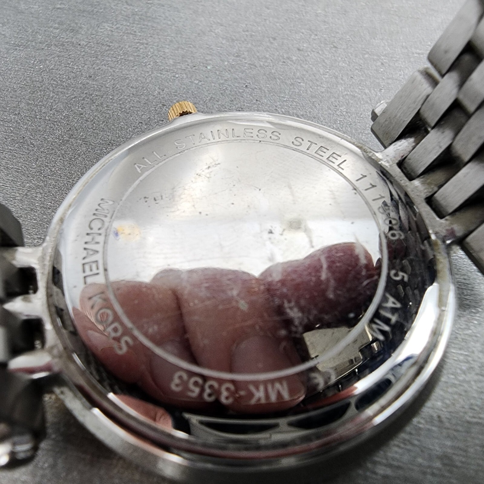 Michael Kors Darci Watch Women 39mm Purple Dial Two Tone Round MK3353 New Batt