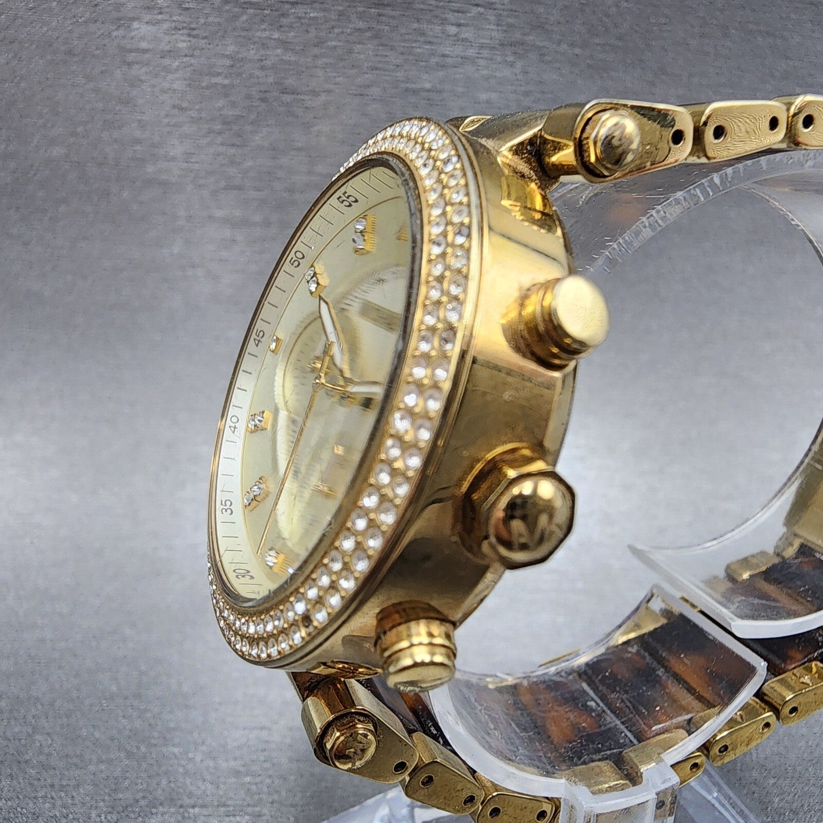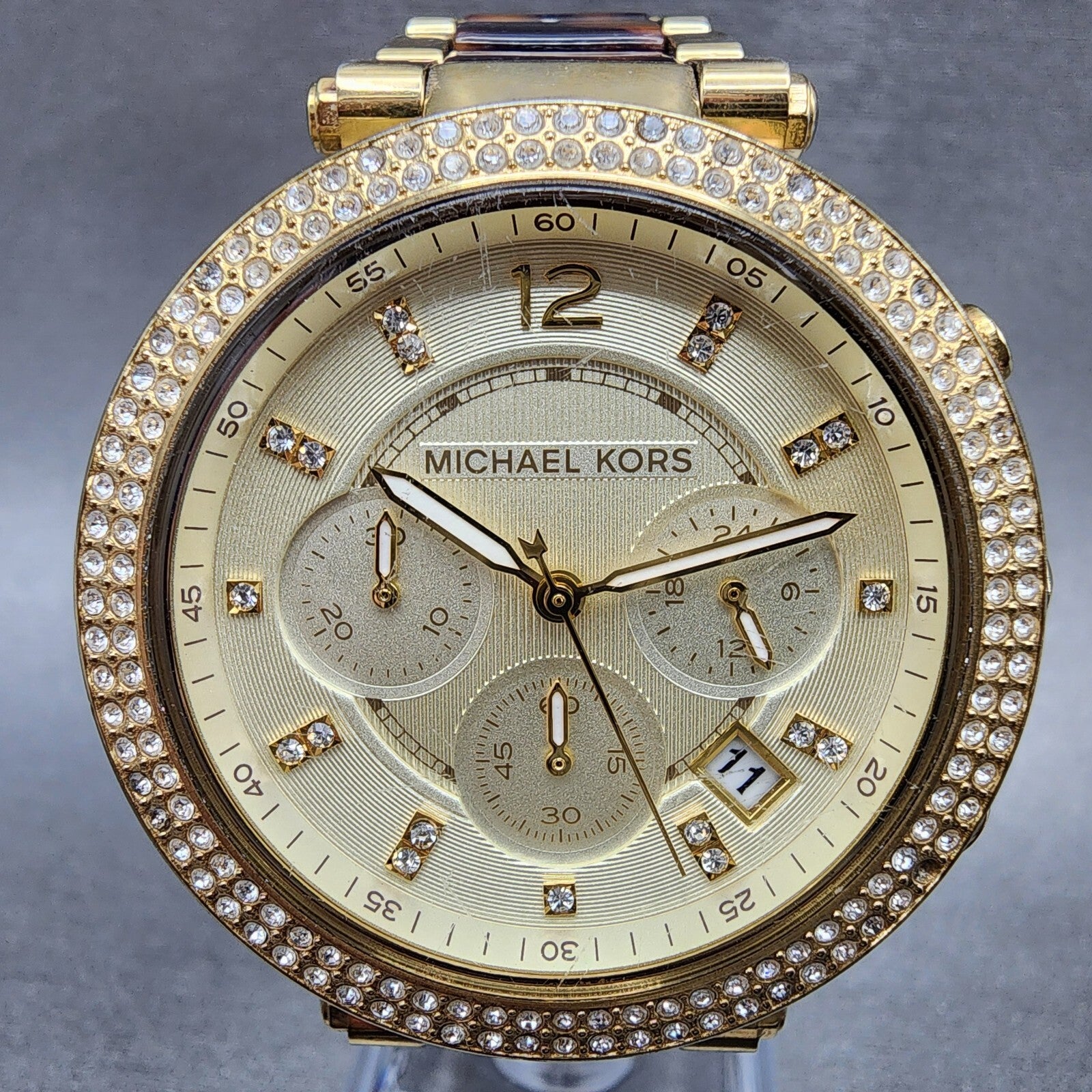 Michael Kors Parker Watch Women 39mm Champagne Dial Gold Tone Date New Battery