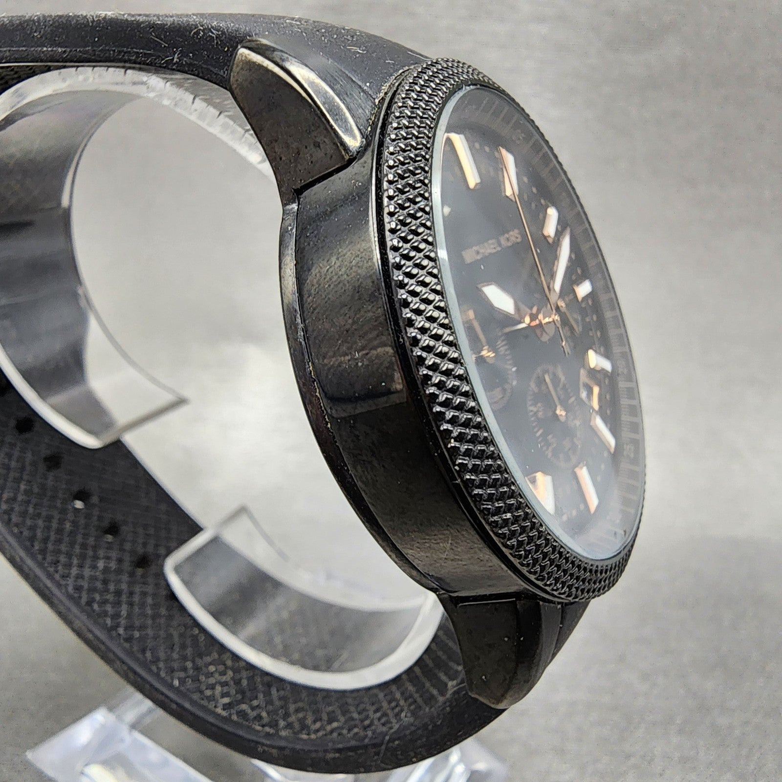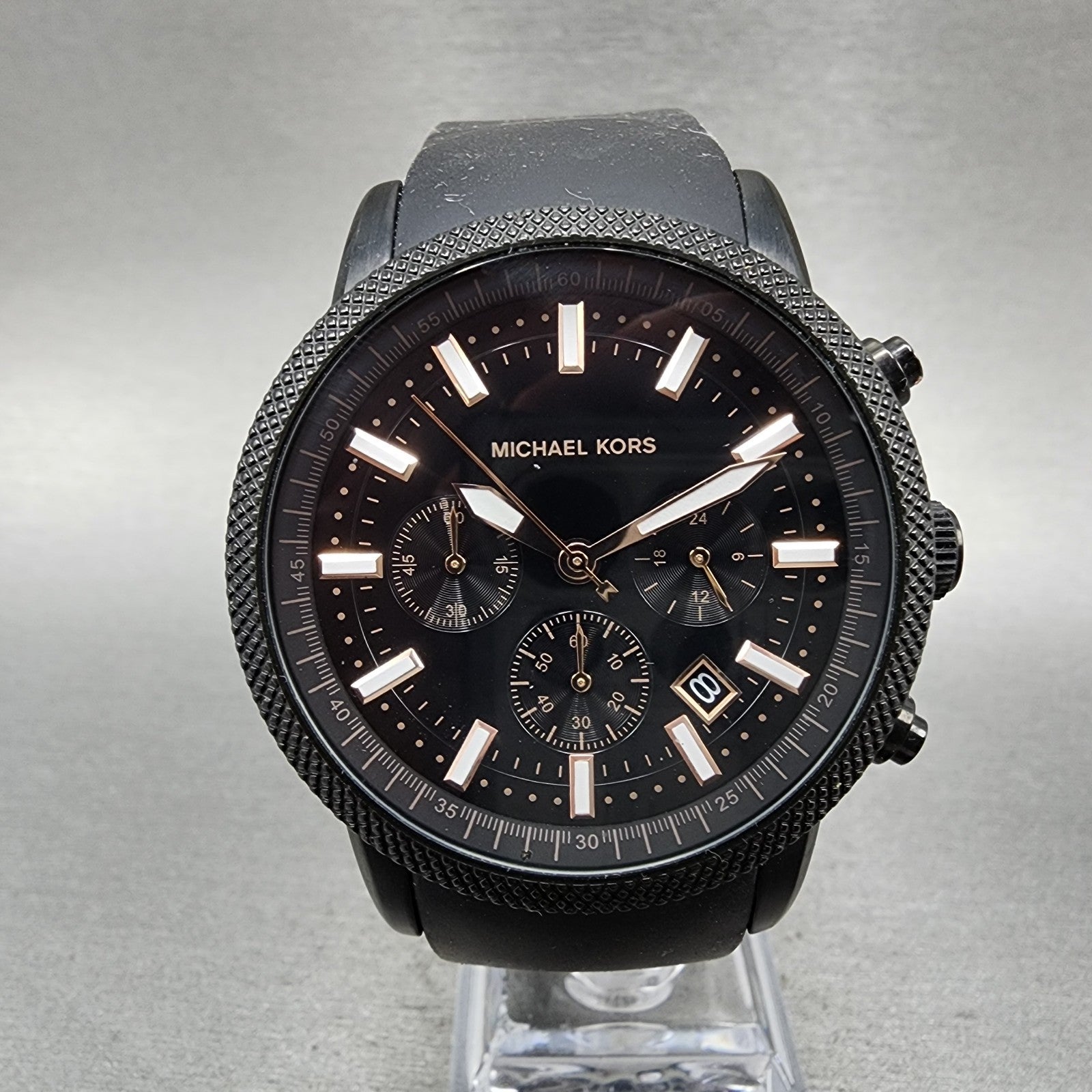 Michael Kors Scout Chronograph Watch Men 43mm Black Dial Black Tone New Battery