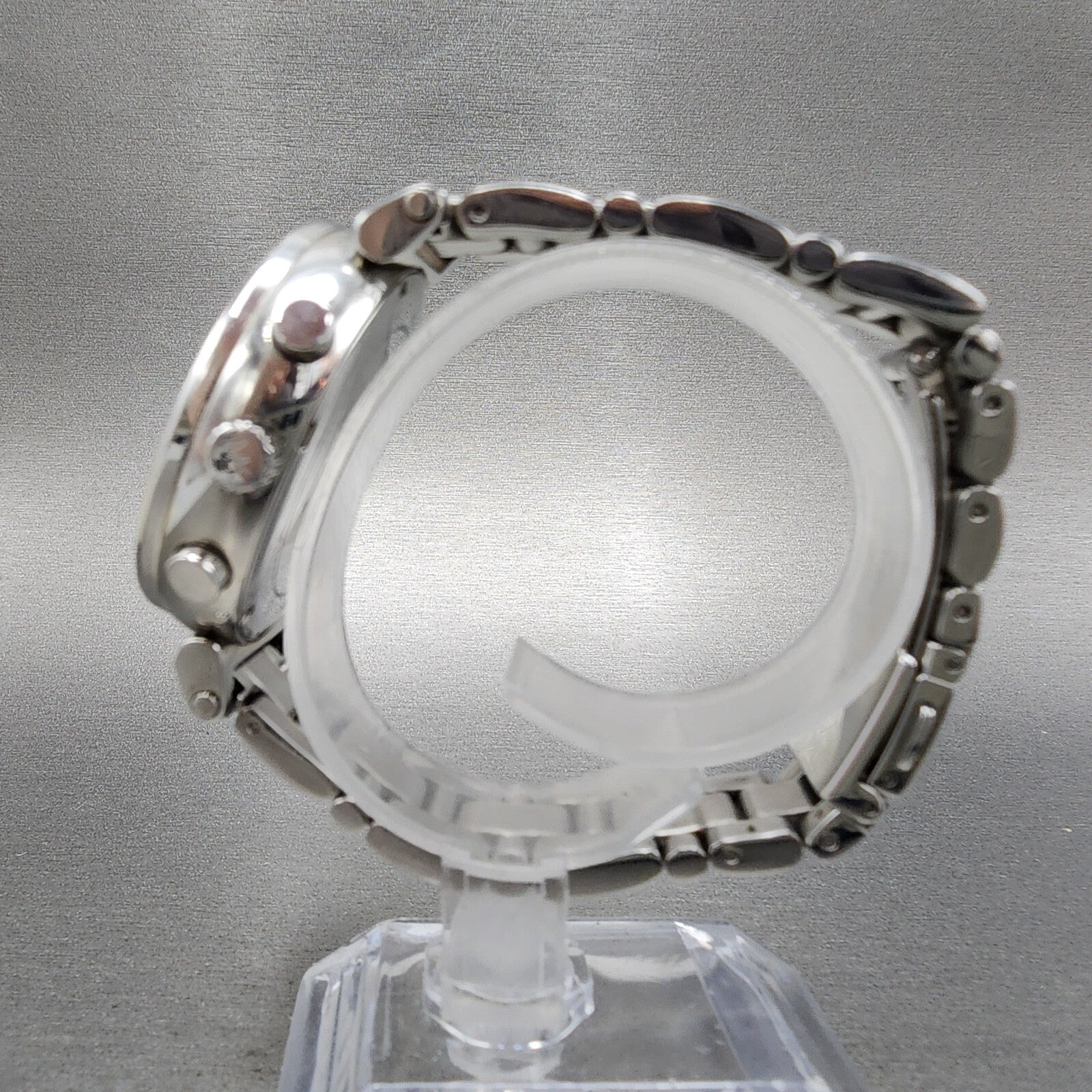 This watch has been used but is in good working condition. There is scratches on the watch. please refer to pictures.