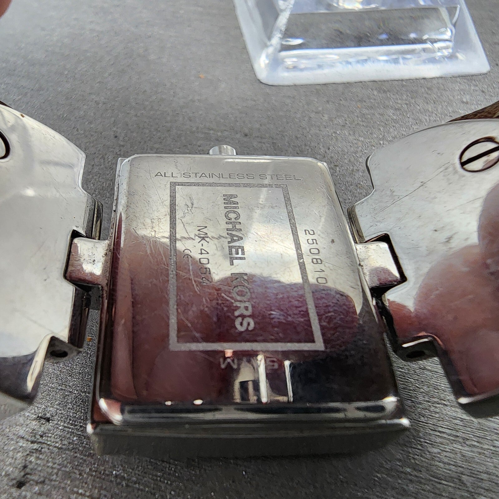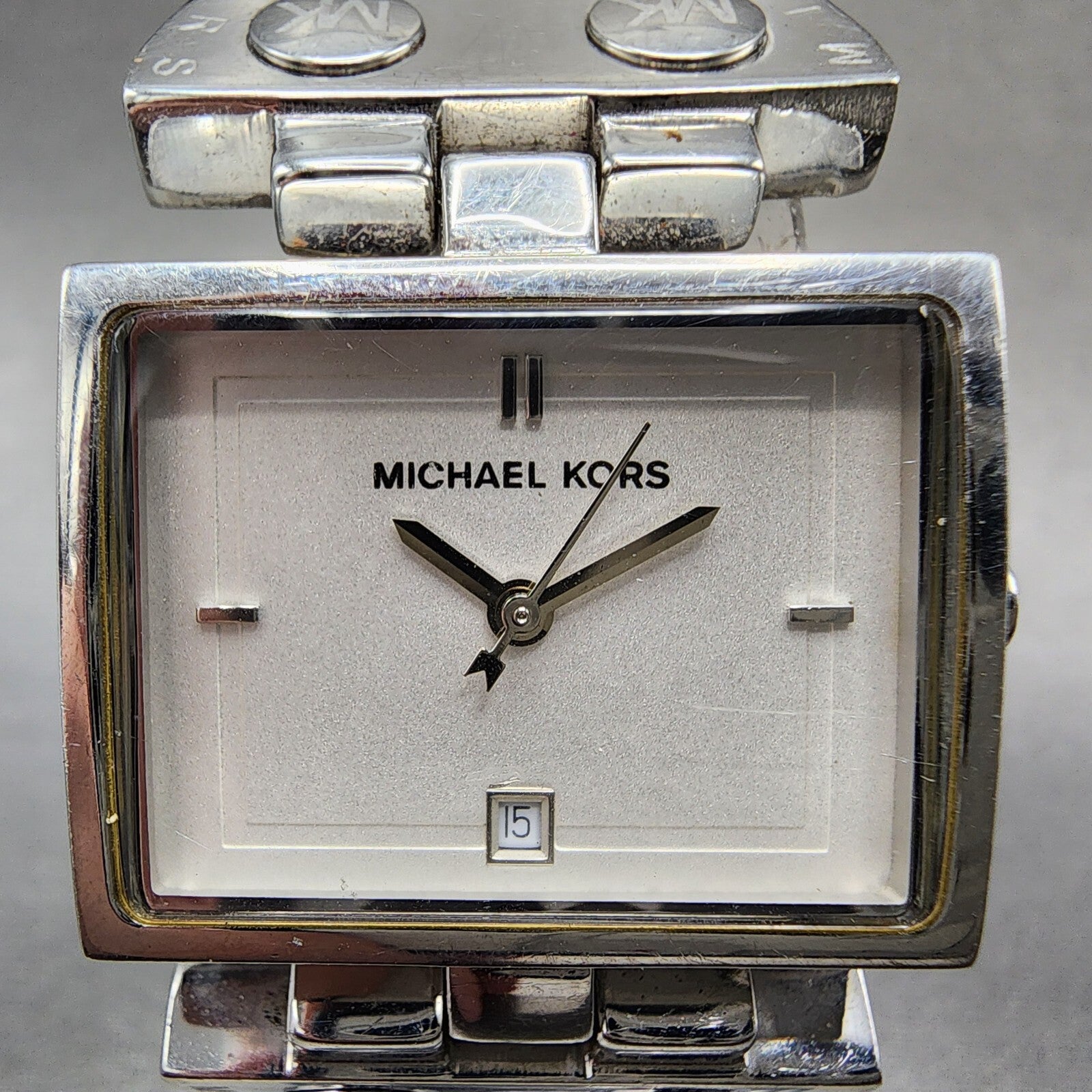 Michael Kors Watch Women 28mm White Dial Steel Date Rectangle MK4054 New Batt