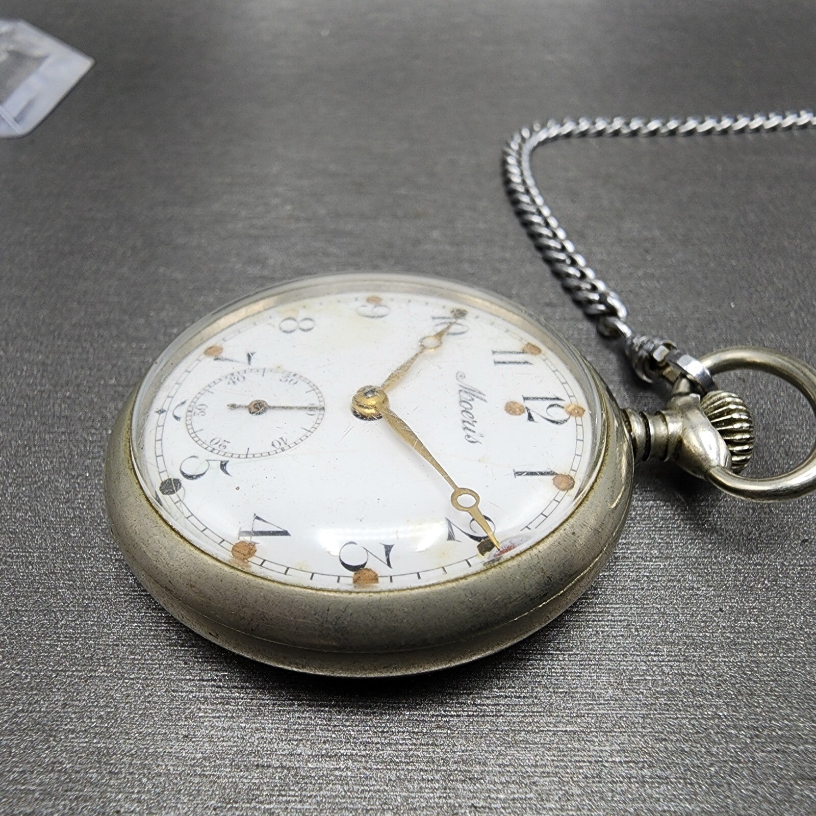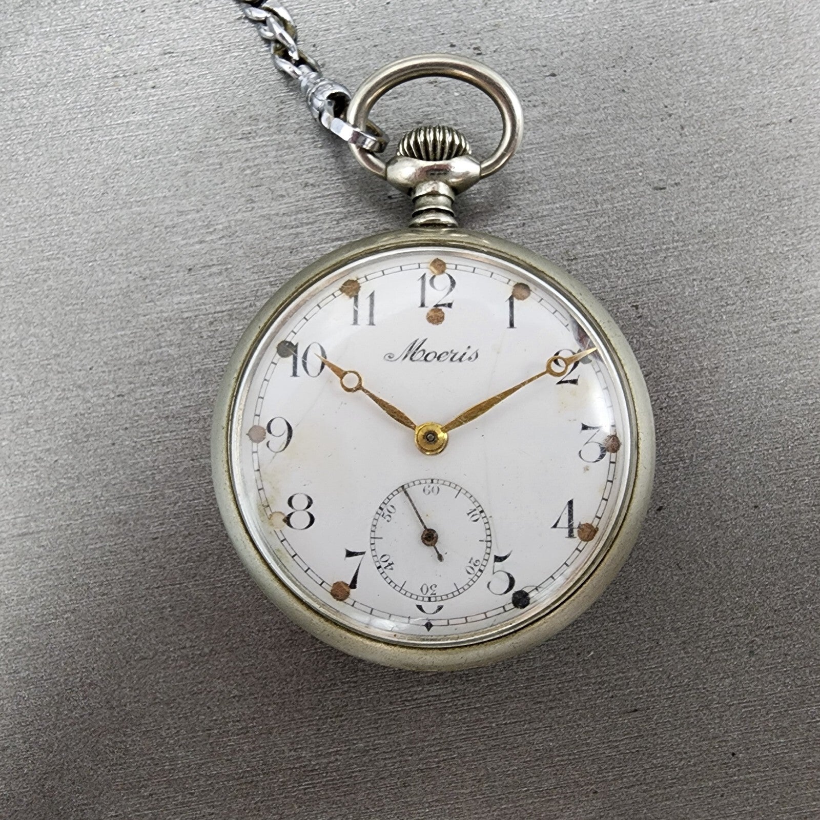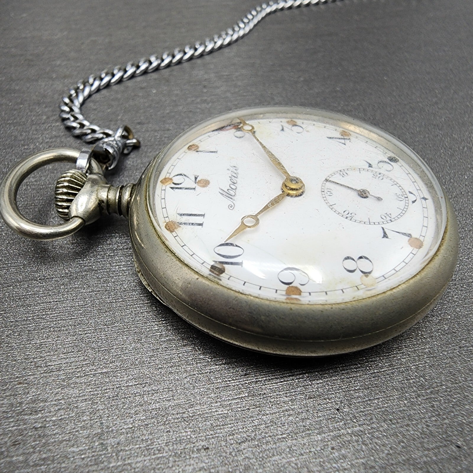Moeris Pocket Watch Men 43mm White Dial Steel Manual Wind READ!!! Vintage