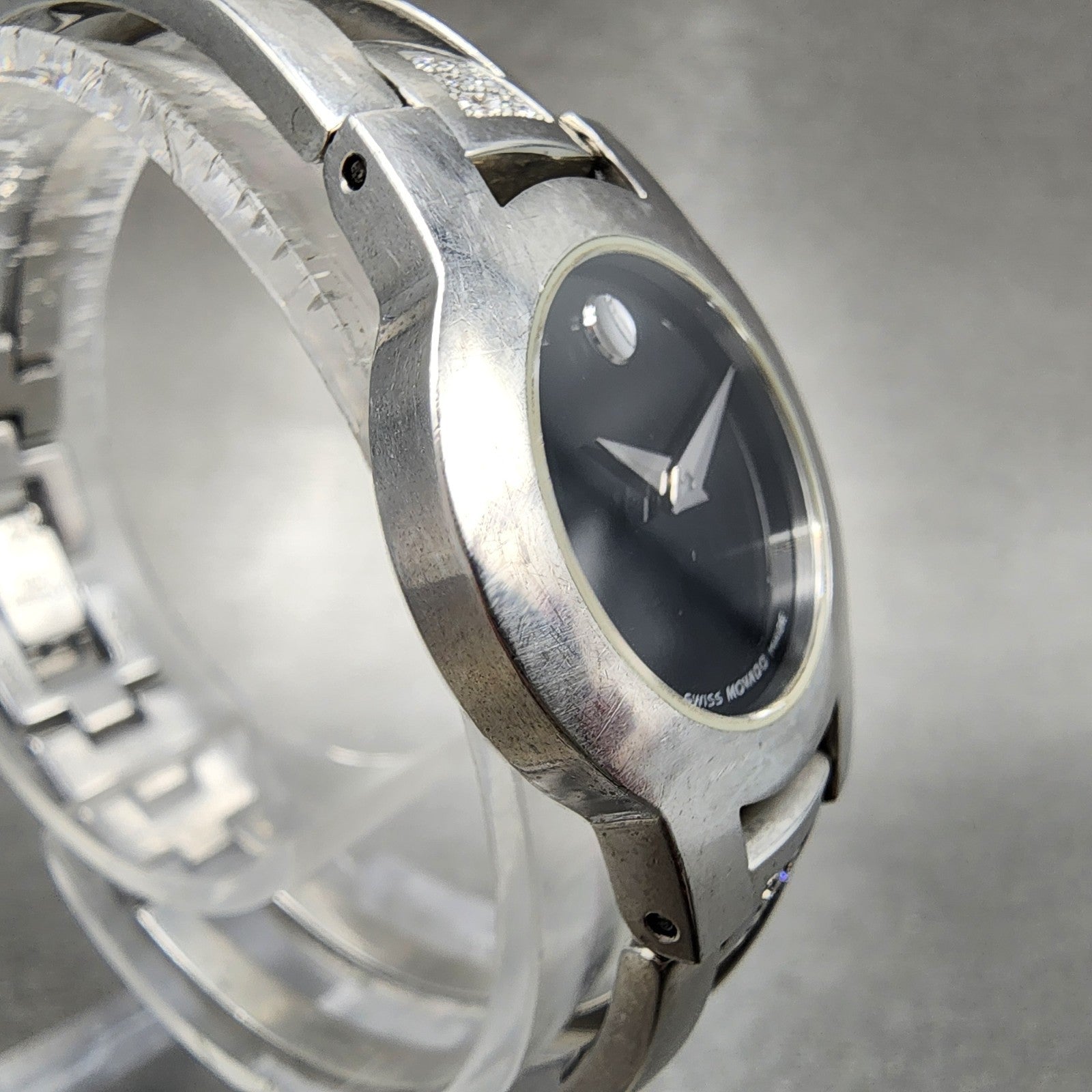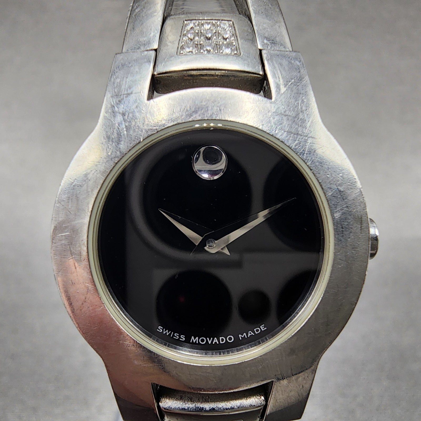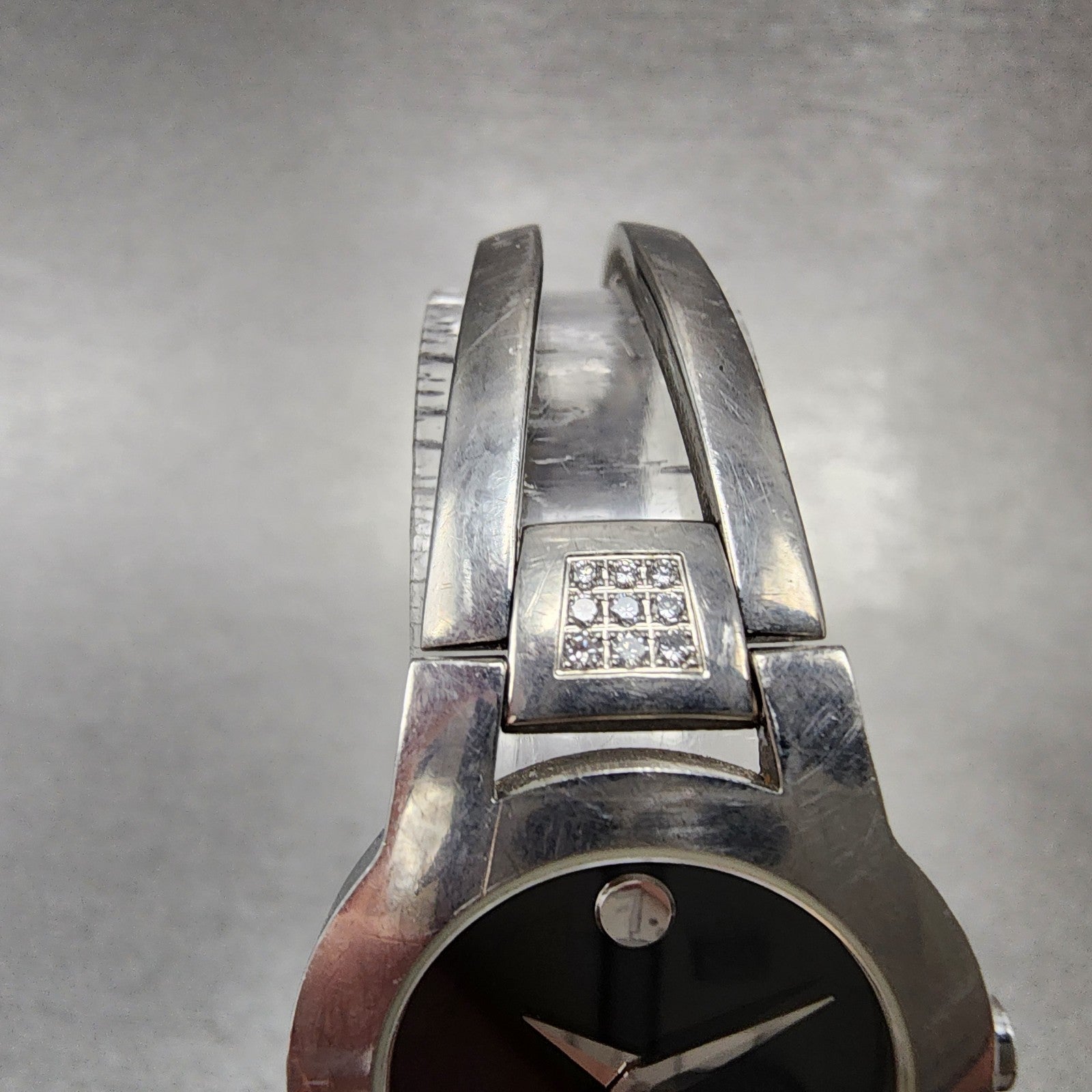 Movado Amorosa Watch Women 24mm Black Dial Steel Diamond Accents New Battery