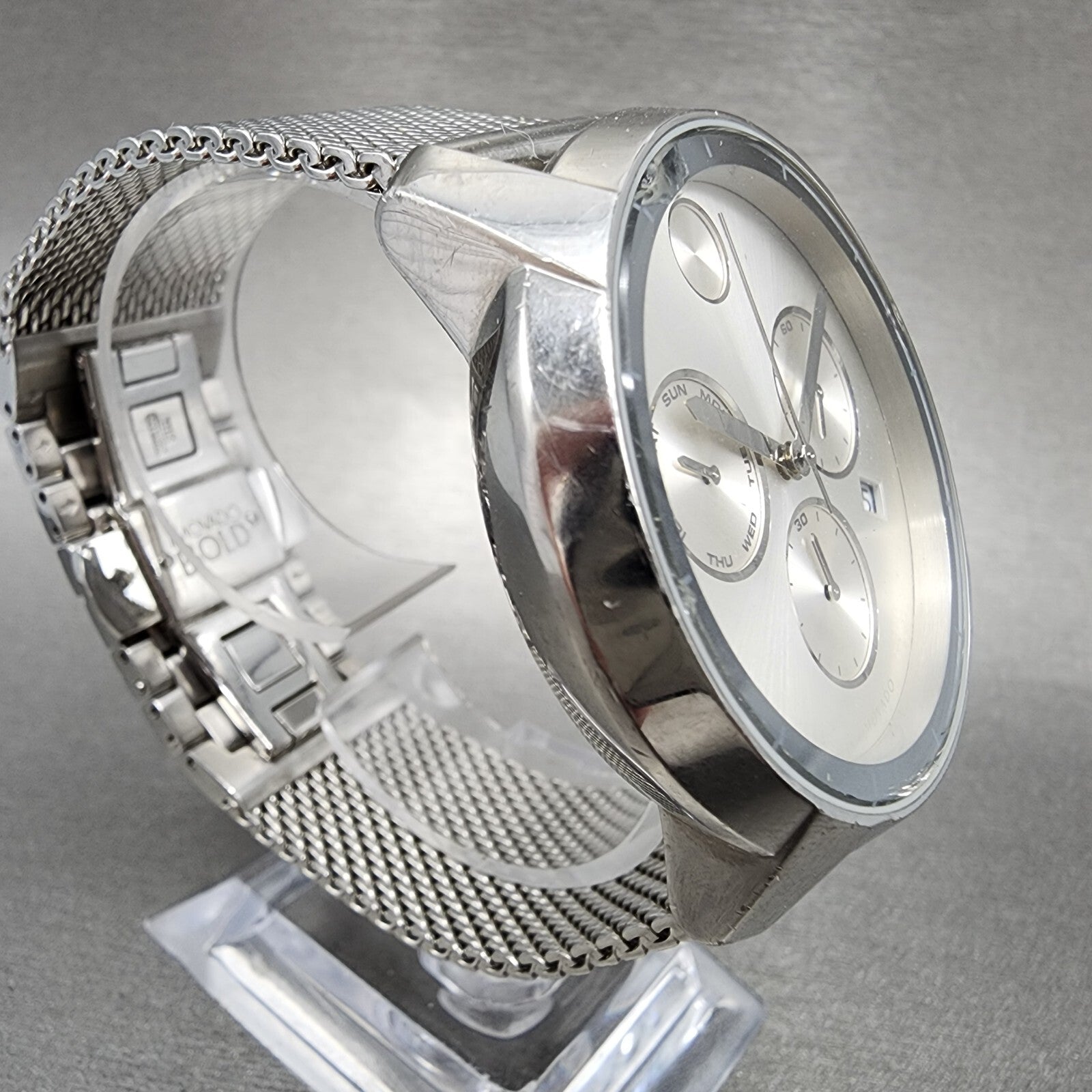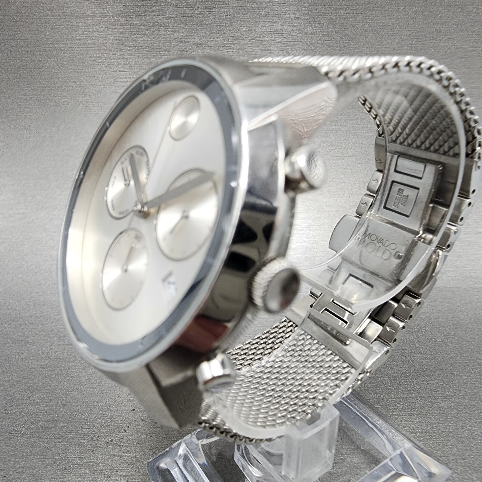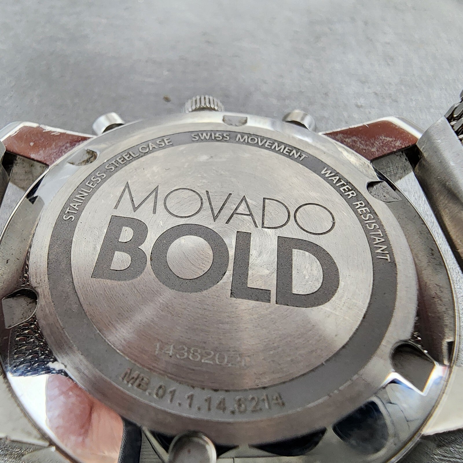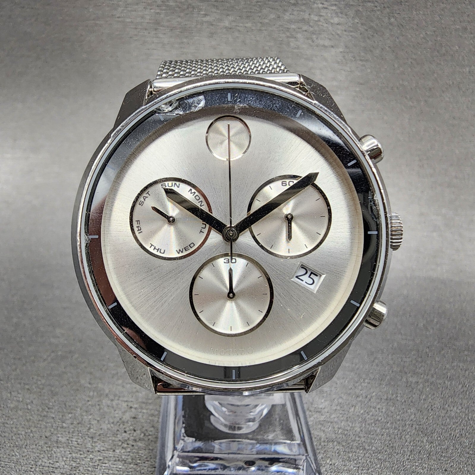 Movado Bold Chronograph Watch Men 44mm Silver Dial Steel Daydate Round New batt