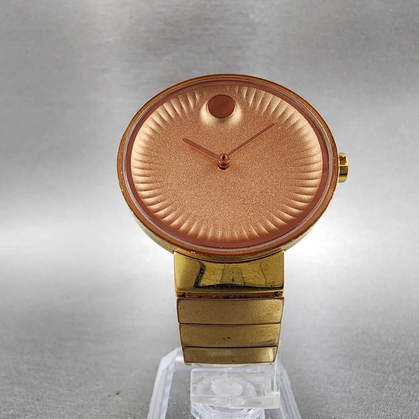 Movado EDGE Watch Women 34mm Pink Dial Rose Gold Tone Round New Battery
