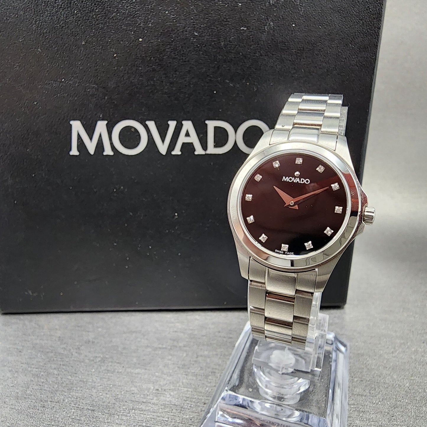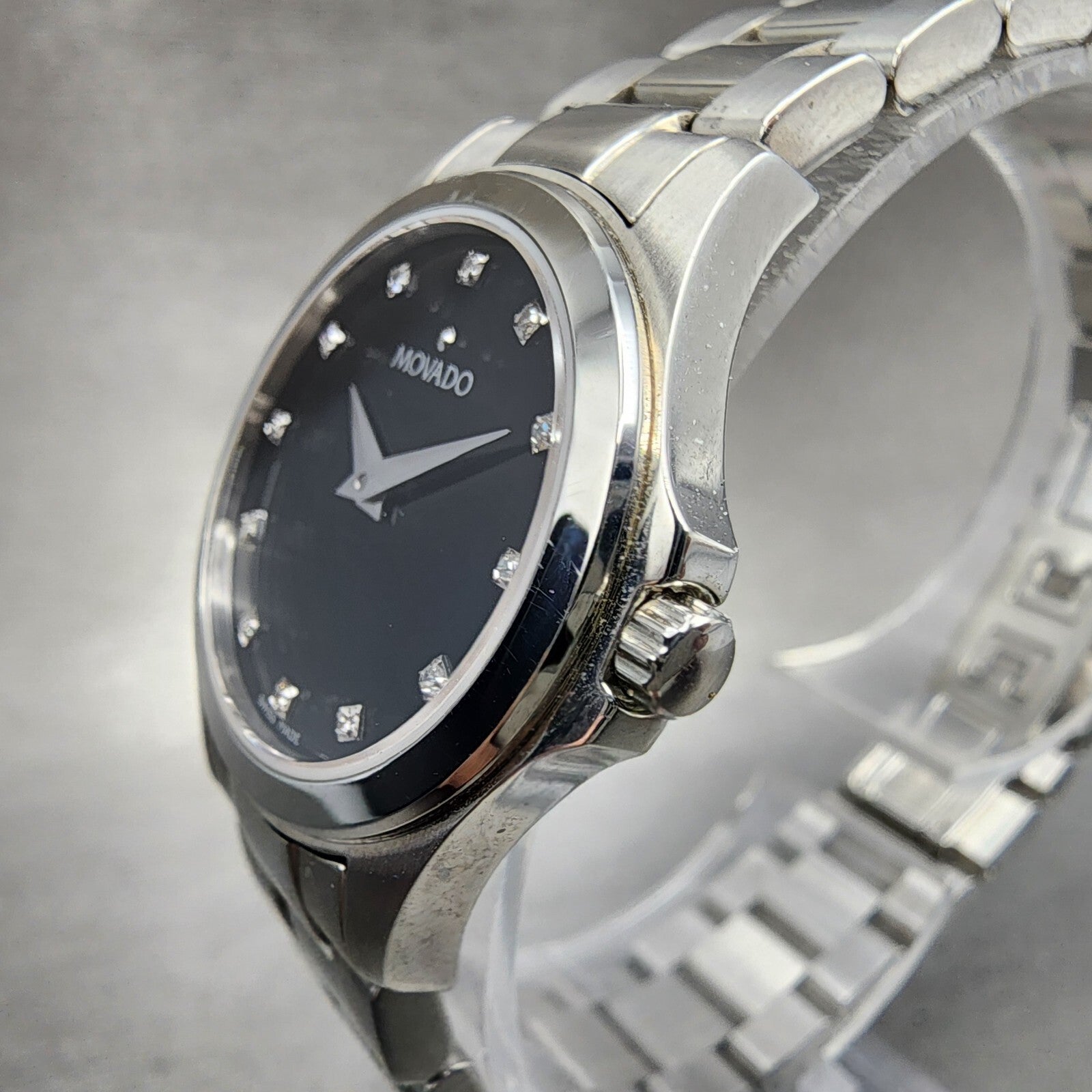 Movado Junior Sport Watch Women 26mm Black Dial Steel Round New Batt Full Set