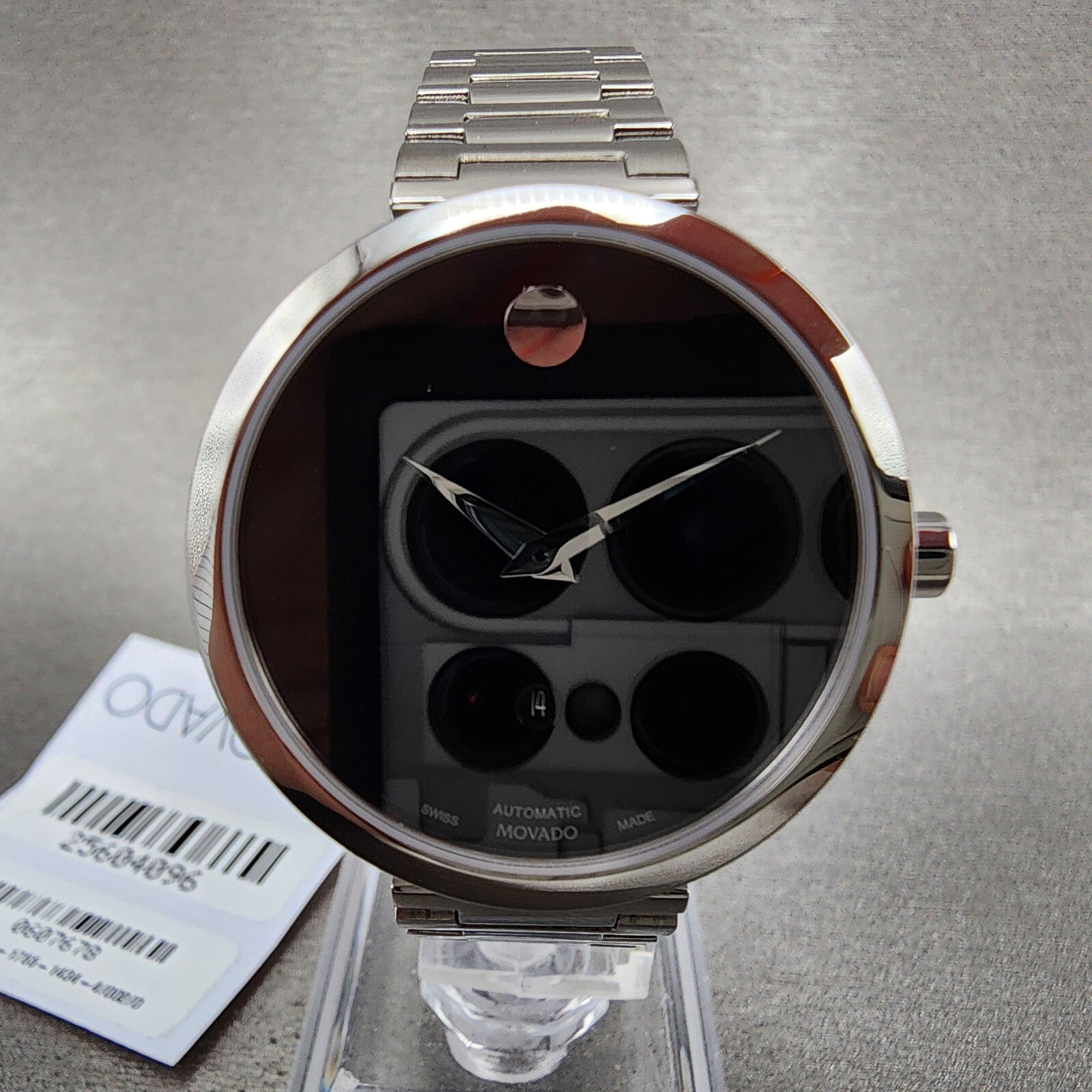Movado Muesem Automatic Watch Women 32mm Black Dial Steel Date Round 0607678