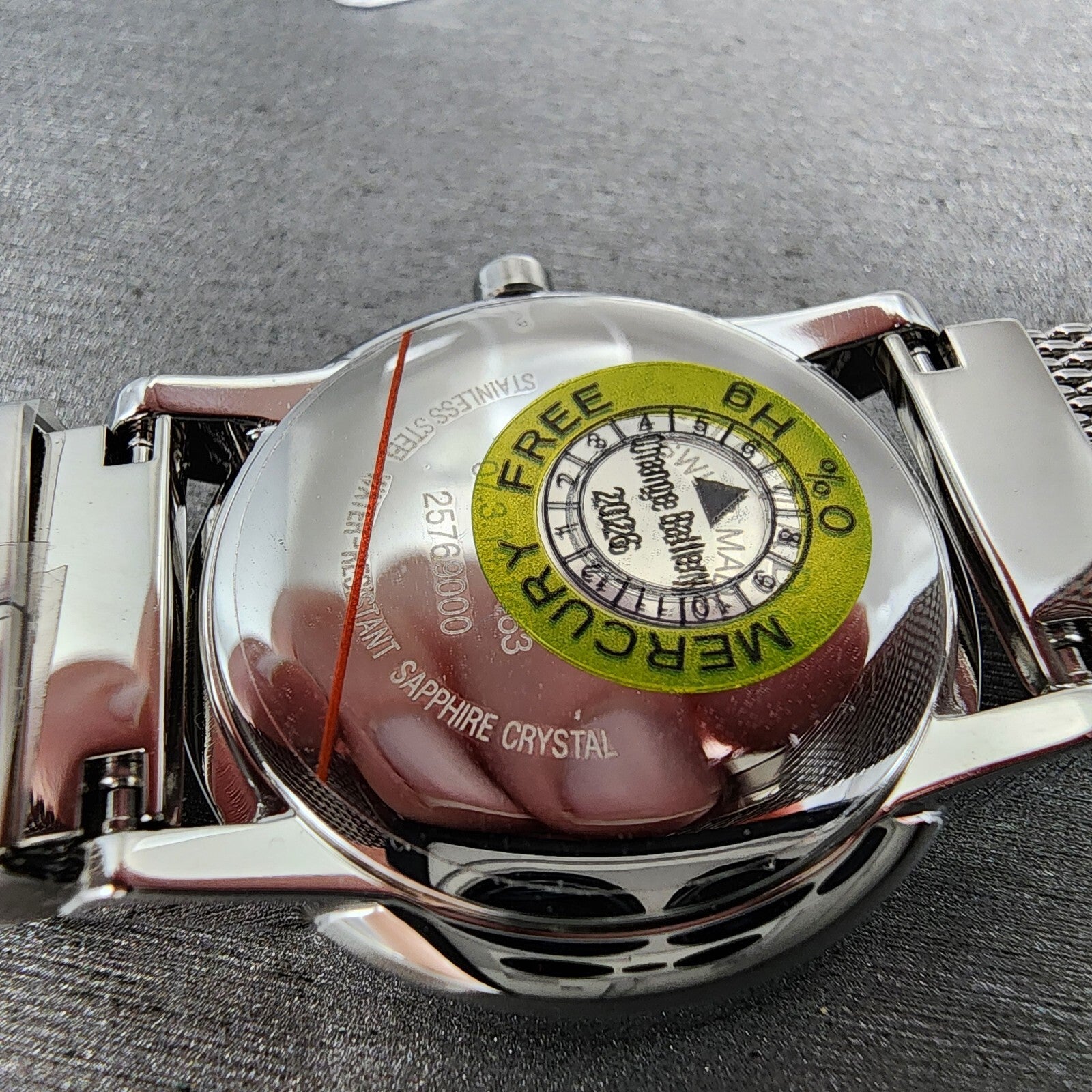 This watch is new but has some light blemish's or scratches on the case and bracelet from handling. Does not include a box or papers. please refer to pictures.