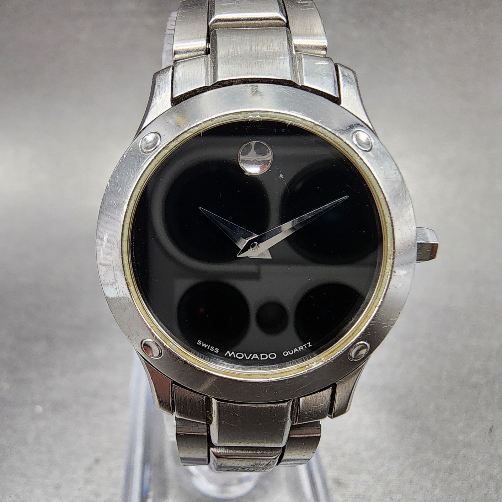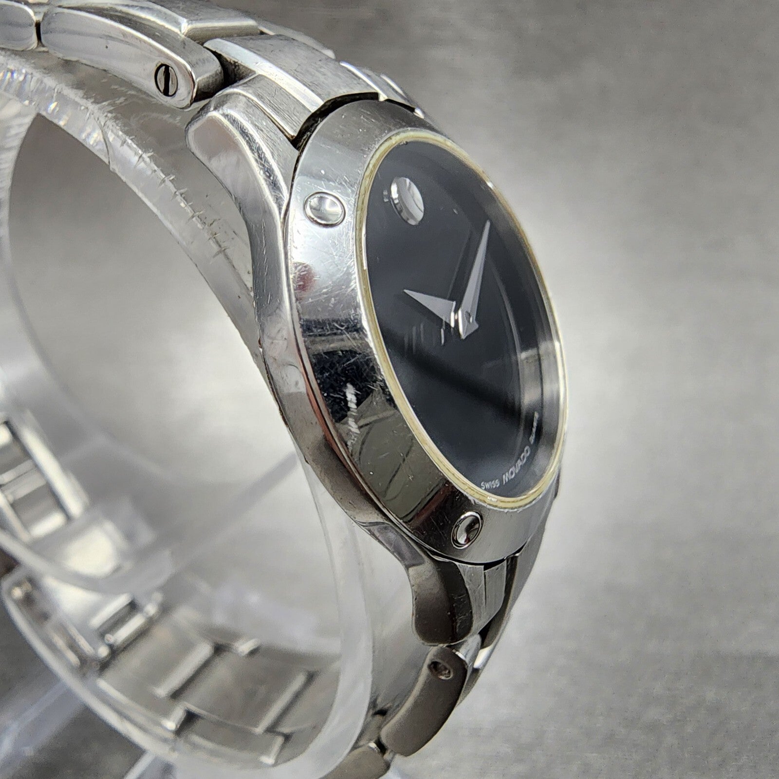 Movado Museum Watch Women 25mm Black Dial Stainless Steel Round New Battery