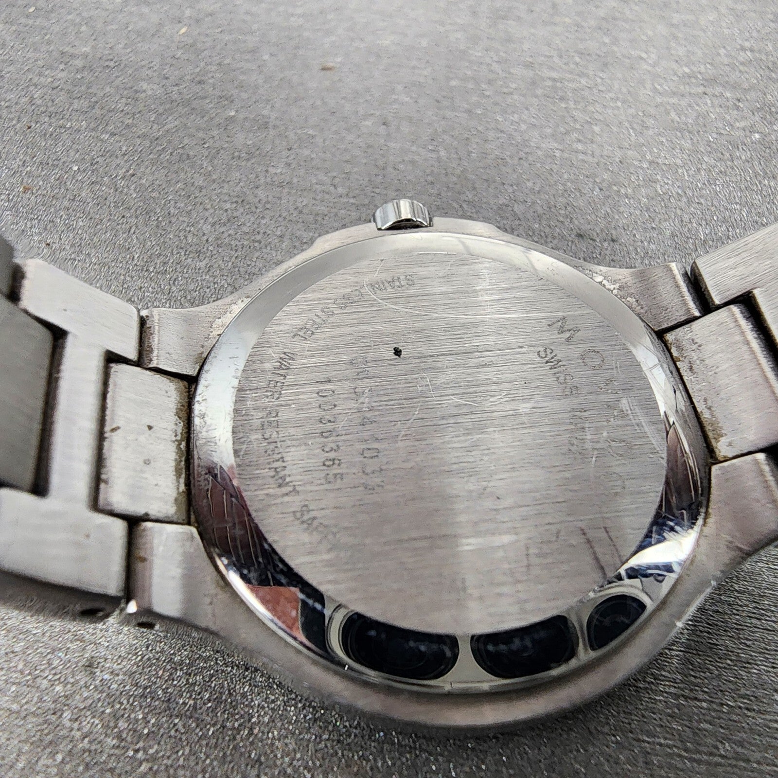 This watch has been used but is in good working condition. There is scratches on the watch. please refer to pictures.