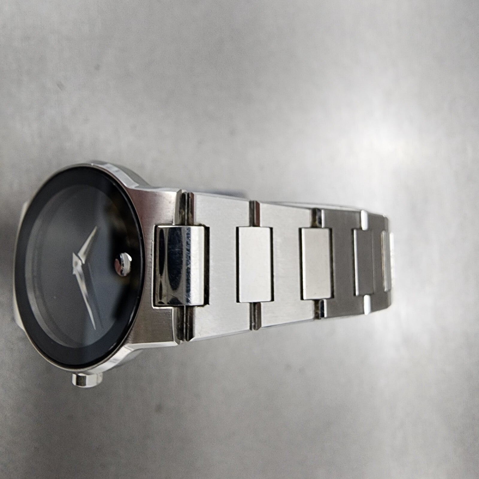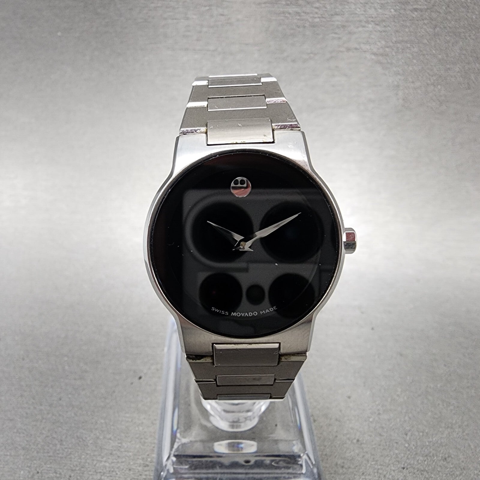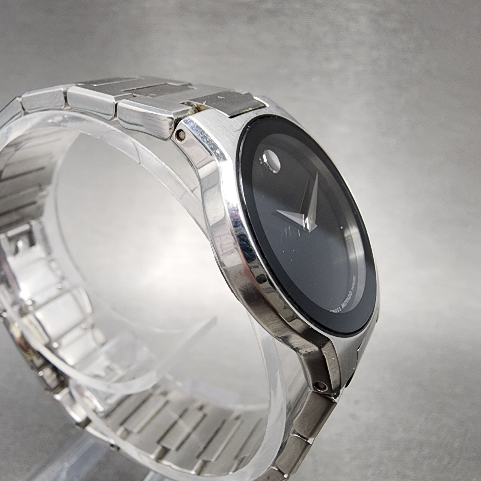Movado Safiro Watch Women 26mm Black Dial Steel Round 0605806 New Battery